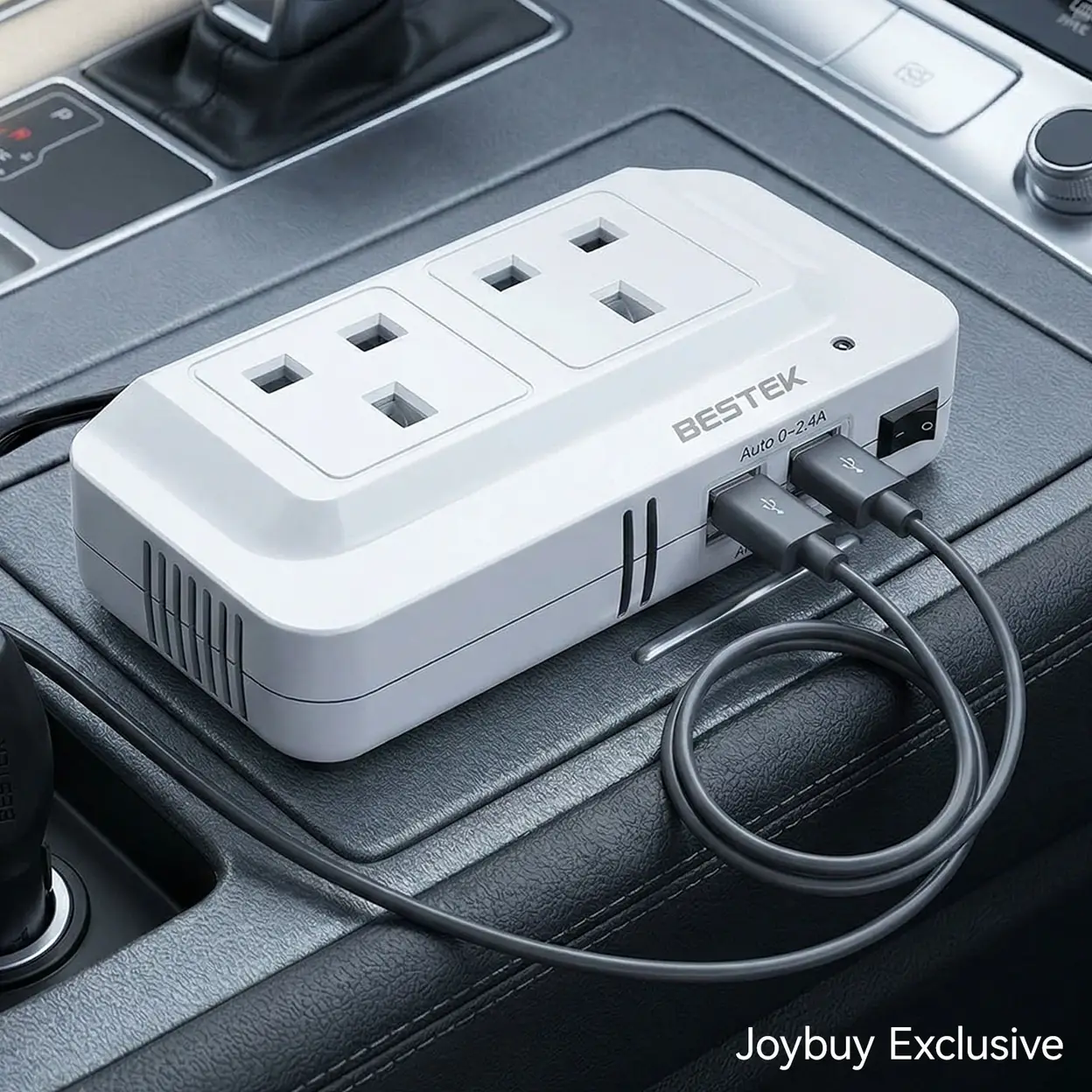 BESTEK 200W Car Power Inverter 12V to 230V/240V Dual AC Outlet with 4 USB Ports Portable Vehicle Charger Adapter