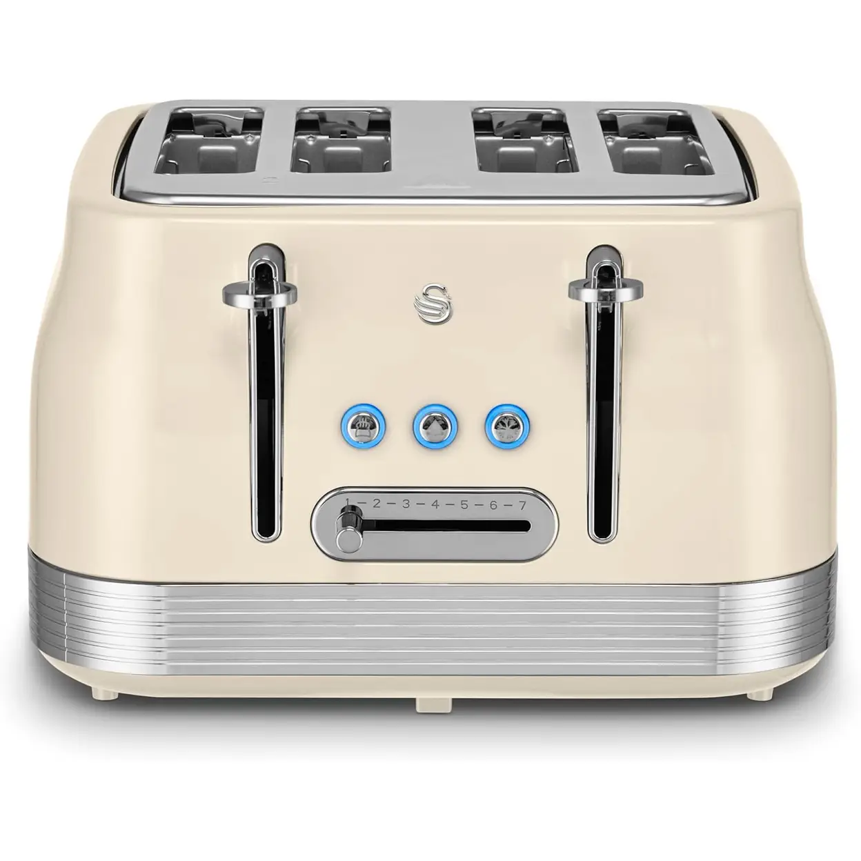 Add timeless style and everyday practicality to your kitchen with the Swan Retro Revive 4 Slice Toaster. Finished in a striking retro cream with chrome accents, this toaster combines classic vintage design with modern toasting performance. Ideal for busy mornings, it offers adjustable browning control, extra-wide slots, and convenient functions to ensure perfectly toasted bread, bagels, and crumpets every time.