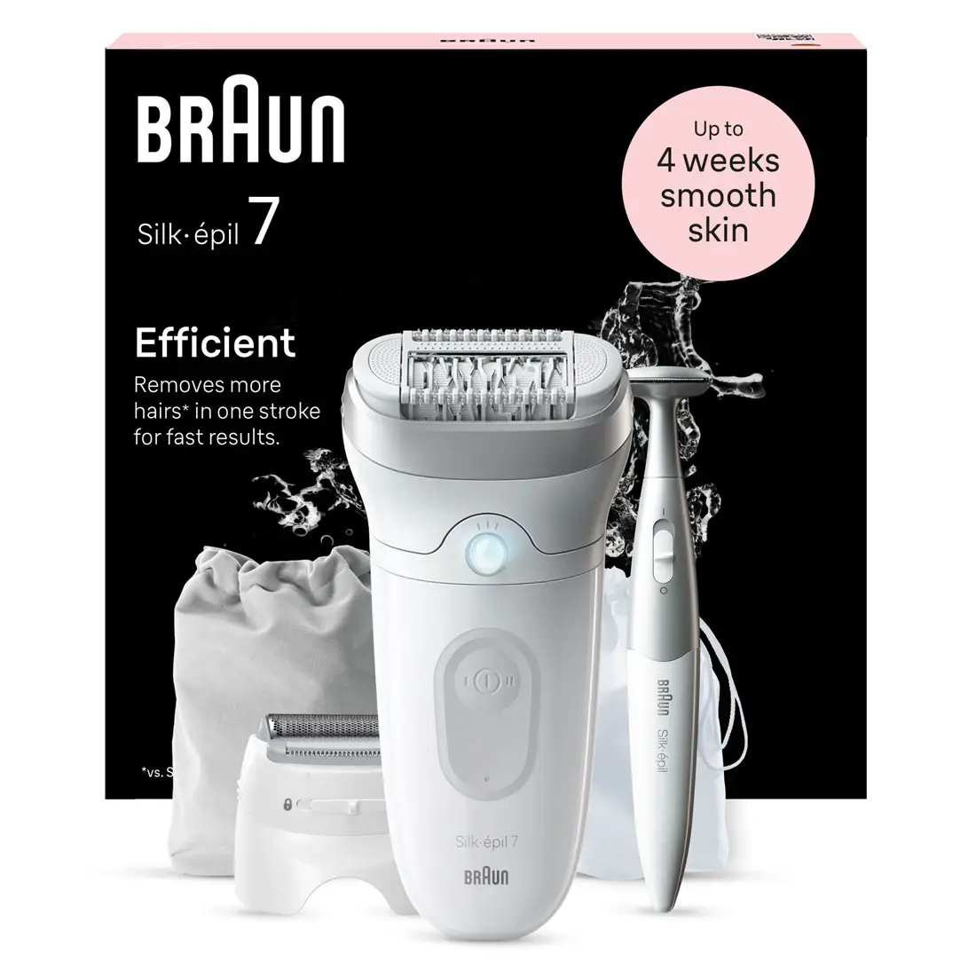 Braun Silk-épil 7 SE7-241, Wet & Dry Cordless Epilator For Easy Hair Removal, Lasting Smooth Skin, White/Silver