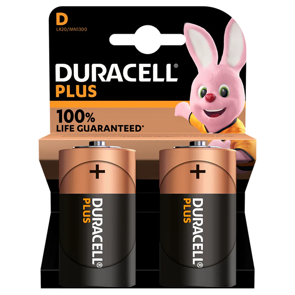 Duracell Plus Power D Size Alkaline Batteries – Pack of 2