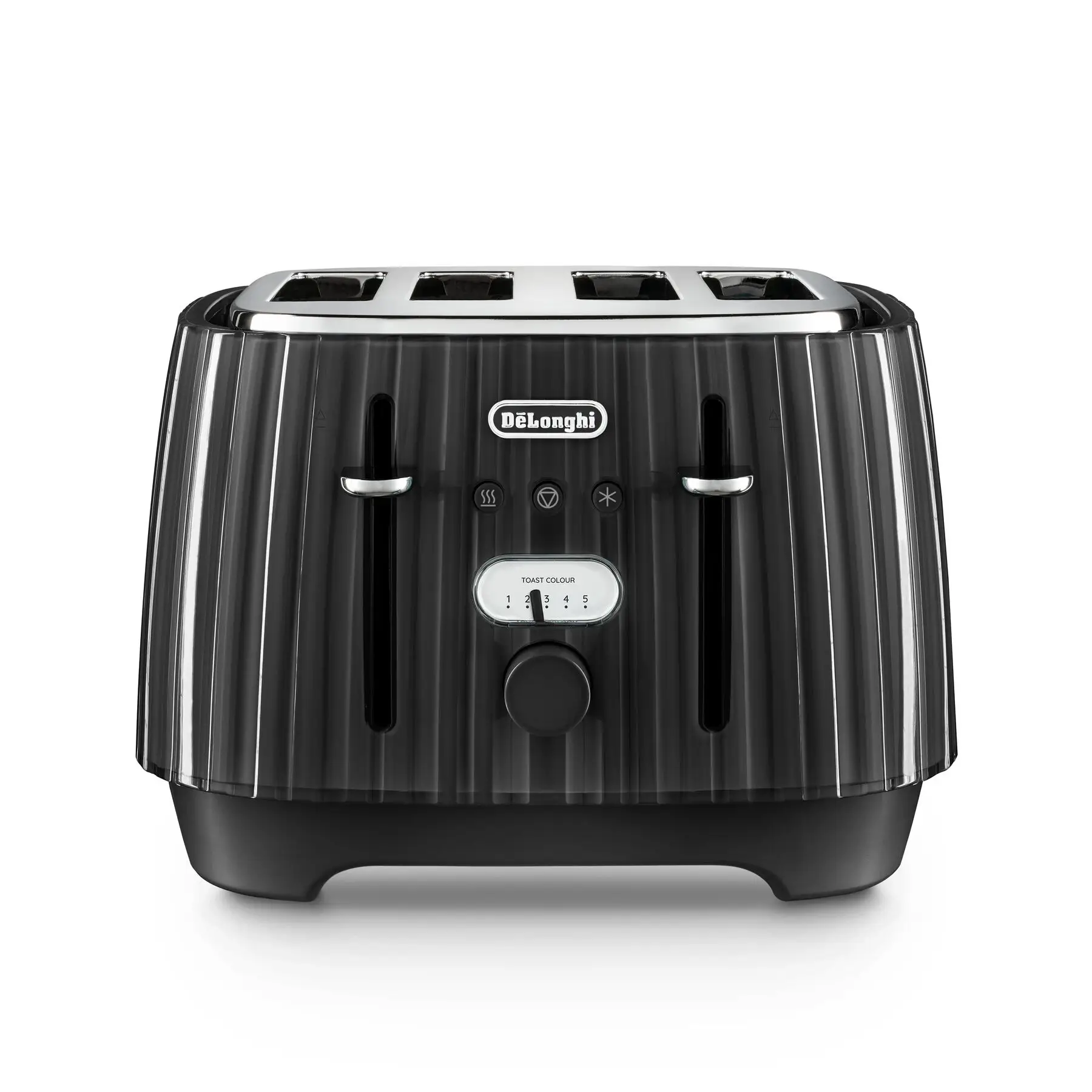 De'longhi Ballerina 4 Slice Toaster, Extra-Wide Slots, Plissé Texture, Furnace Black - CTD4003.BK