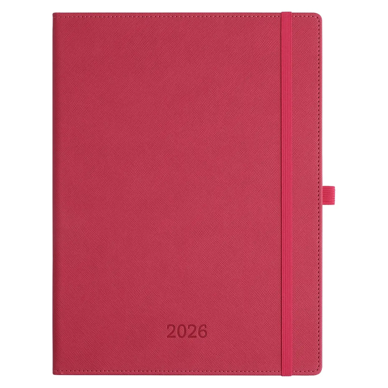 IN-LUXPRO Diary 2026 Planner A4 (29x21.7 cm) Week to View, 12 Months Weekly & Monthly Plan with Month Tabs & Pocket & Expenses/Note Pages 100GSM Paper PU Leather Hardcover Rose Red, New Year Sale , Top gift picks