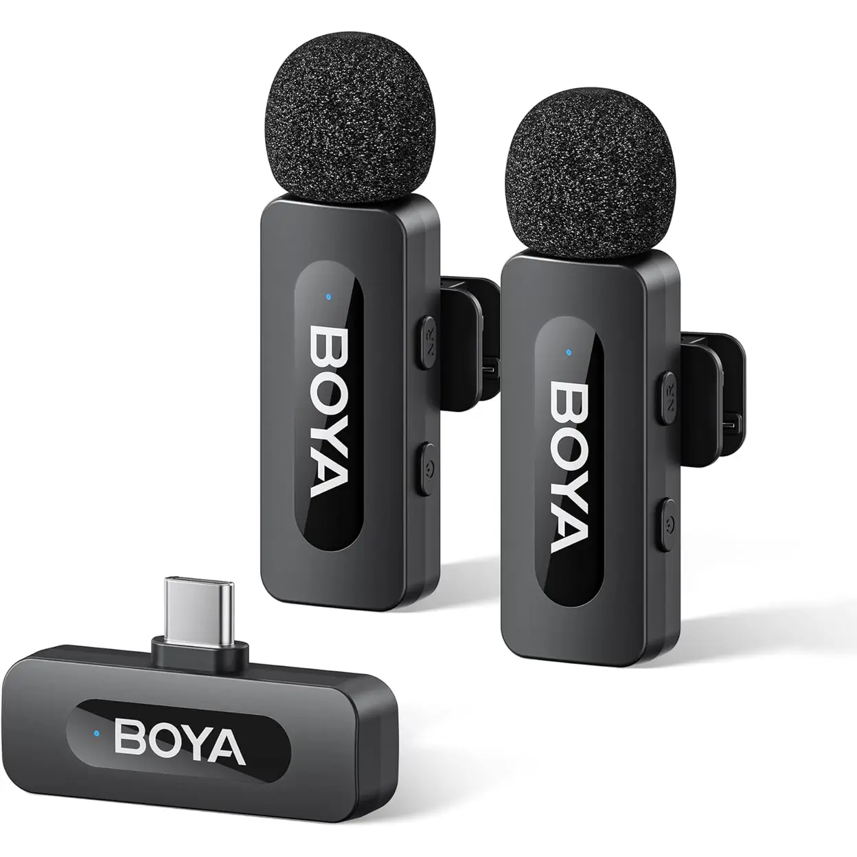 BOYA BY-V20 V2.0 USB-C Wireless Microphone for iPhone 16/17, Android with One-Click to Noise Cancellation, 9h Battery Life (2 TX+1 RX)