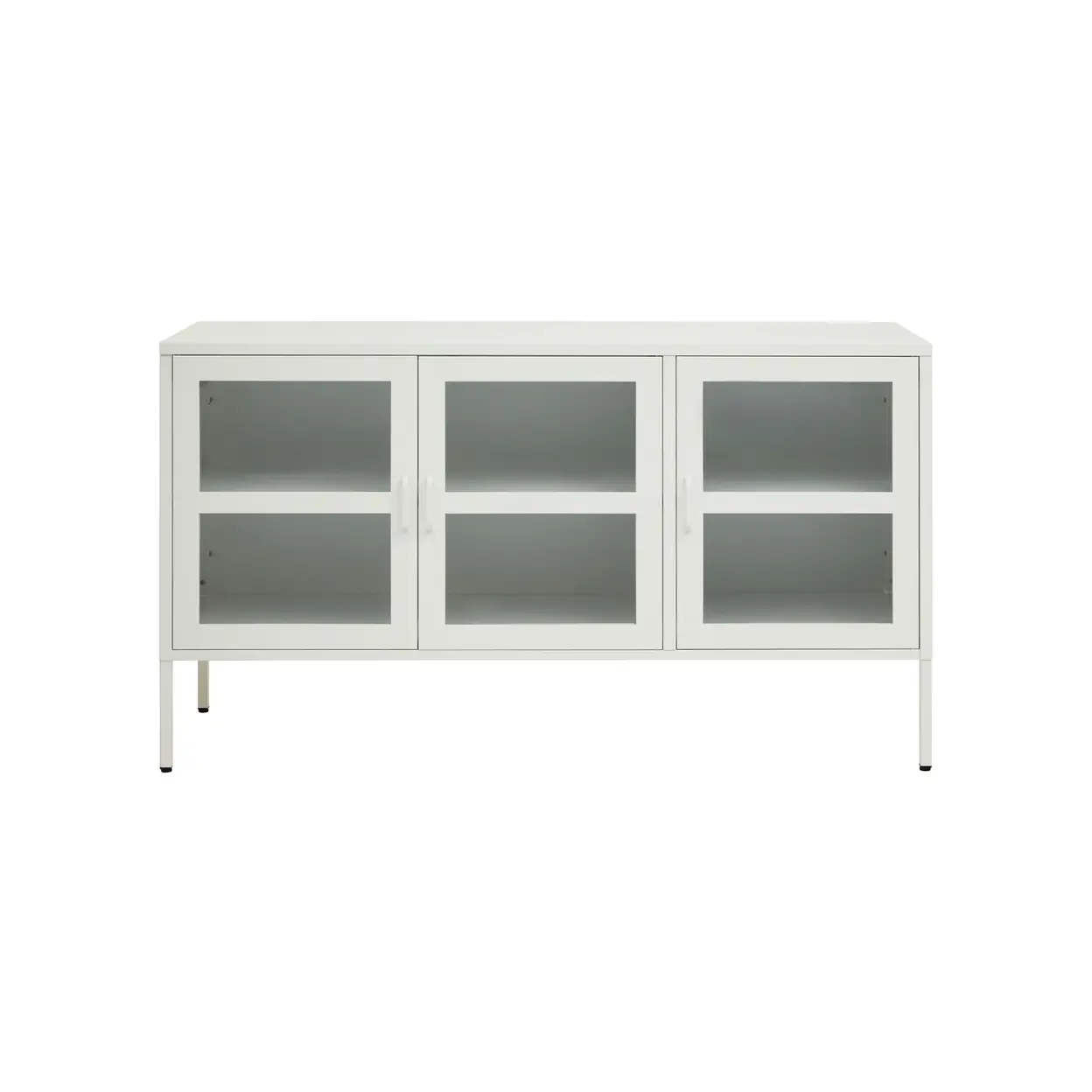 Elevate your living space with the timeless allure of the Three Door White Sideboard from Interiors by Premier. This meticulously crafted piece combines industrial aesthetics with practical functionality, making it an essential addition to any modern home. Standing as a testament to superior craftsmanship, this sideboard boasts a sturdy White powder coated metal frame that promises enduring durability.