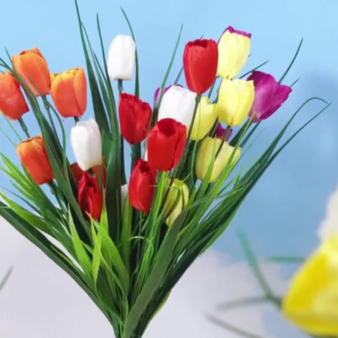 12Pcs 15in/38cm Artificial Flowers Multicolor Fake Tulips No Fade Faux Tulips Plastic Flowers Arrangement for Easter Spring Decoration Wreath