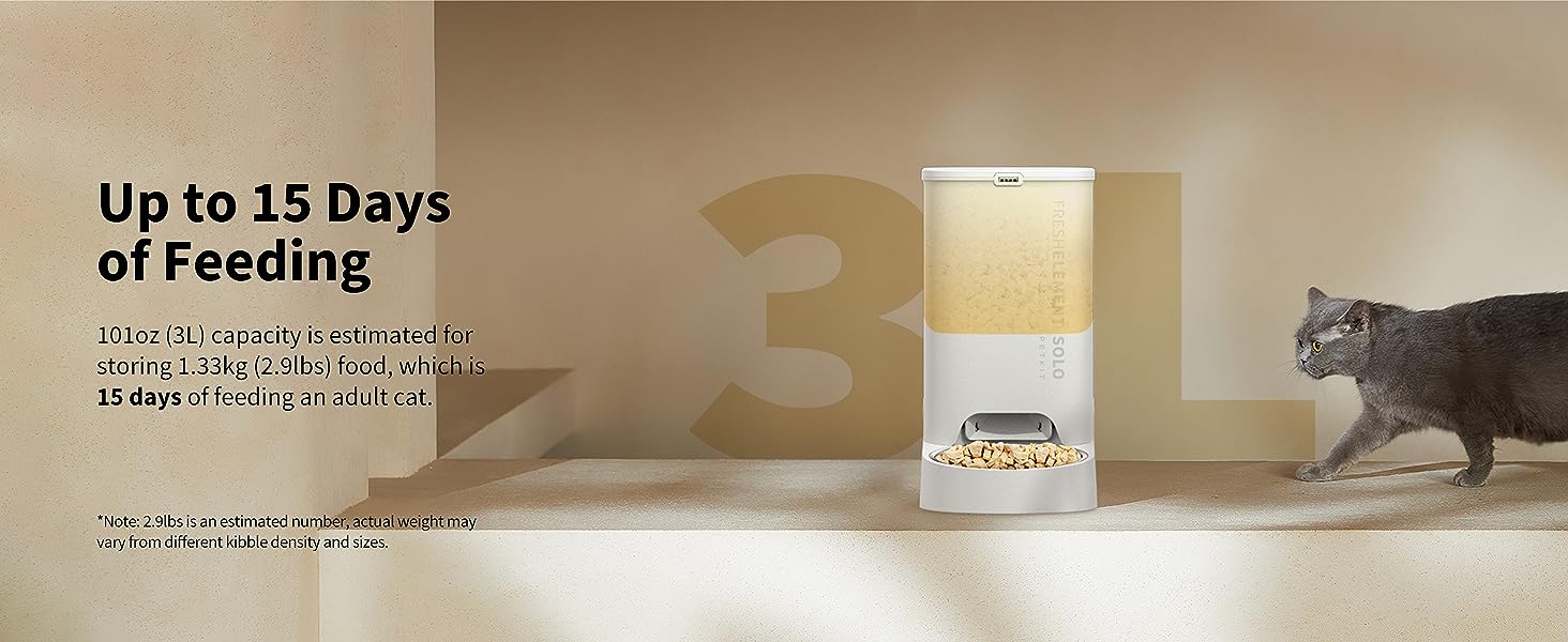 PETKIT Automatic Cat Feeder, 2.4G WiFi, 3L Feeder Cats, APP Control, 1-10 Meals Per Day, Compatible with Freeze Dried Food, Stainless Steel Bowl, USB Cable (Milk White) Element SOLO White image 3
