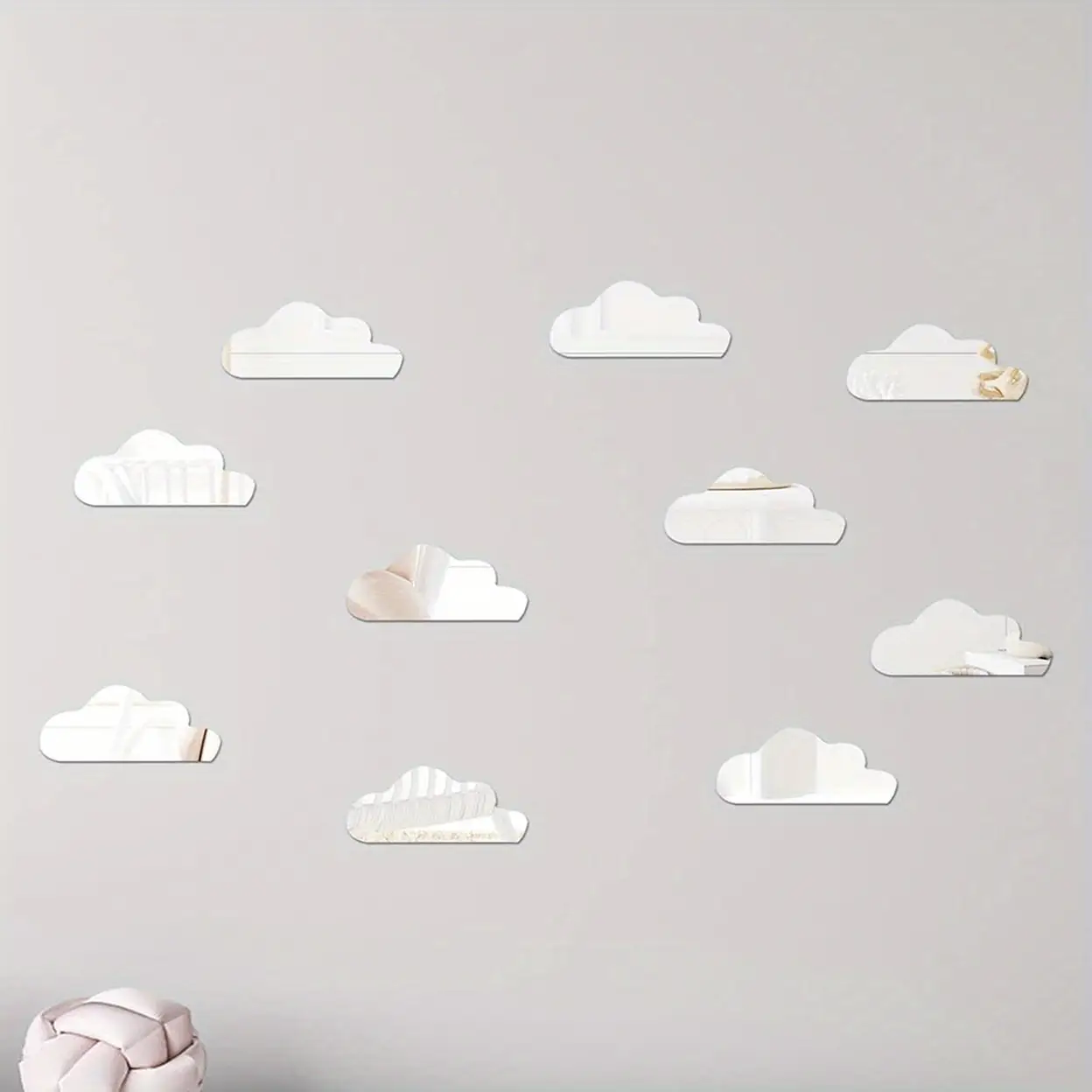 10pcs PVC mirror wall stickers, irregular wall decoration, cloud stickers,silver