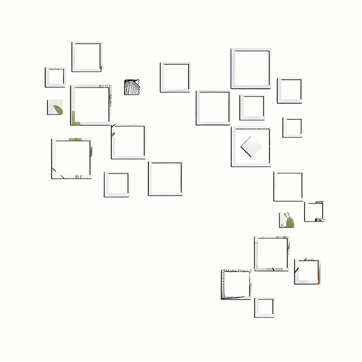 24pcs PVC mirror-finish hollowed-out rectangular acrylic stickers, self-adhesive, waterproof, removable.silver