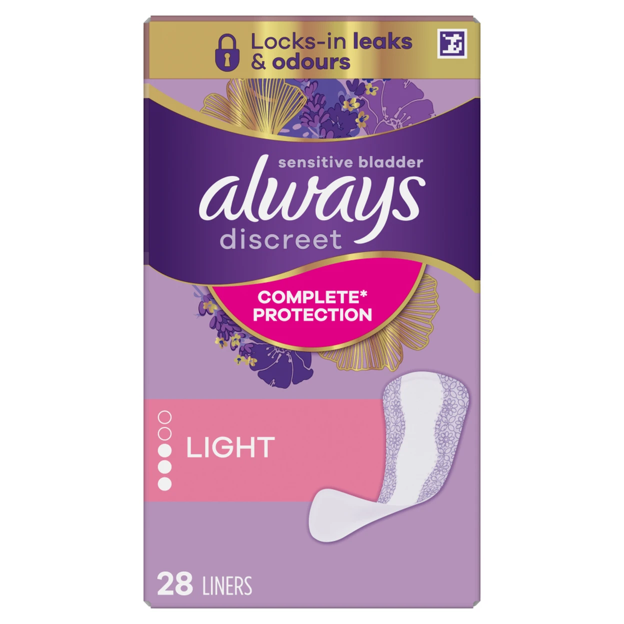 Always Discreet Incontinence Liners Light 28 Panty Liners For Sensitive Bladder 300g