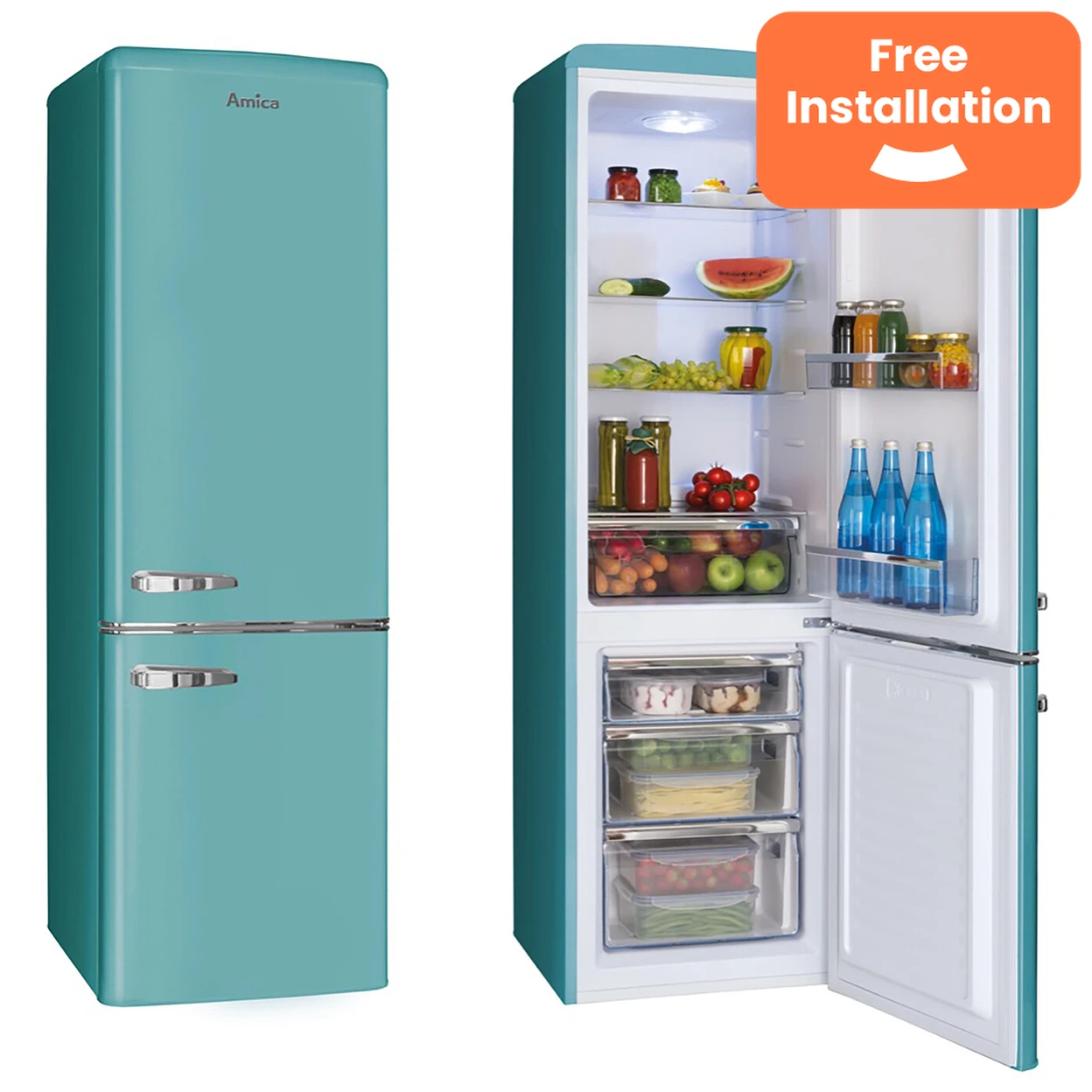 Amica FKR29653DEB Retro Static Fridge Freezer, 60/40, Blue, E Rated