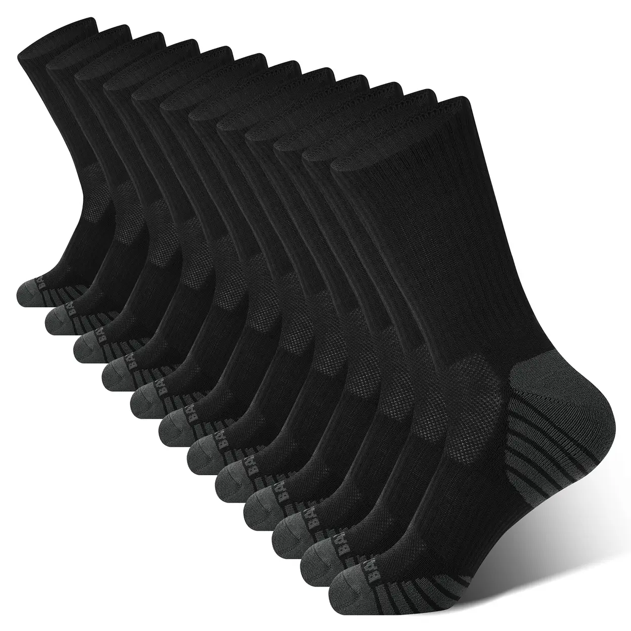 BAMBOO COOL Men's Crew Socks Athletic Running Sports Socks, Cushioned Moisture Wicking, Breathable Arch Support L (6 Pack) image 5