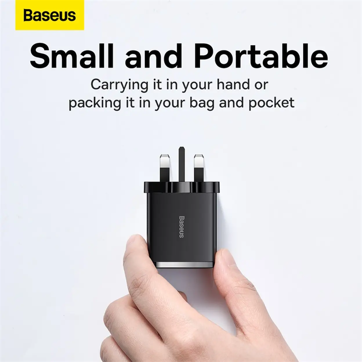 Baseus Quick Charger 2U+C 30W, 3-Port UK Travel Adapter, Black, compatible with iphone, Samsung,Google Pixel