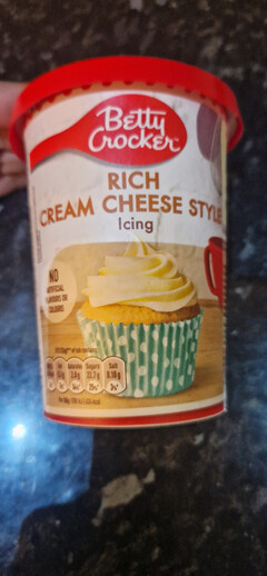 - Betty Crocker Cream Cheese Icing is a rich and smooth, mouth-watering cream cheese flavoured icing, perfect for your red velvet cake and makes the perfect carrot cake frosting.