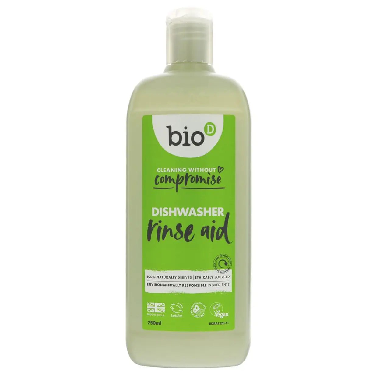 BIO D Dishwasher Rinse Aid – 750ml delivers high-performance results using a gentle, plant-based formula. Ideal for all types of dishwashing machines, this rinse aid enhances the drying cycle and prevents streaks, watermarks, and smudges. Free from harsh synthetic chemicals, including MIT, BIT, and MI, it's formulated to be safe for you, your family, and the planet. The natural ingredients work effectively without leaving any harmful residue, offering a sustainable solution to sparkling clean dishes.