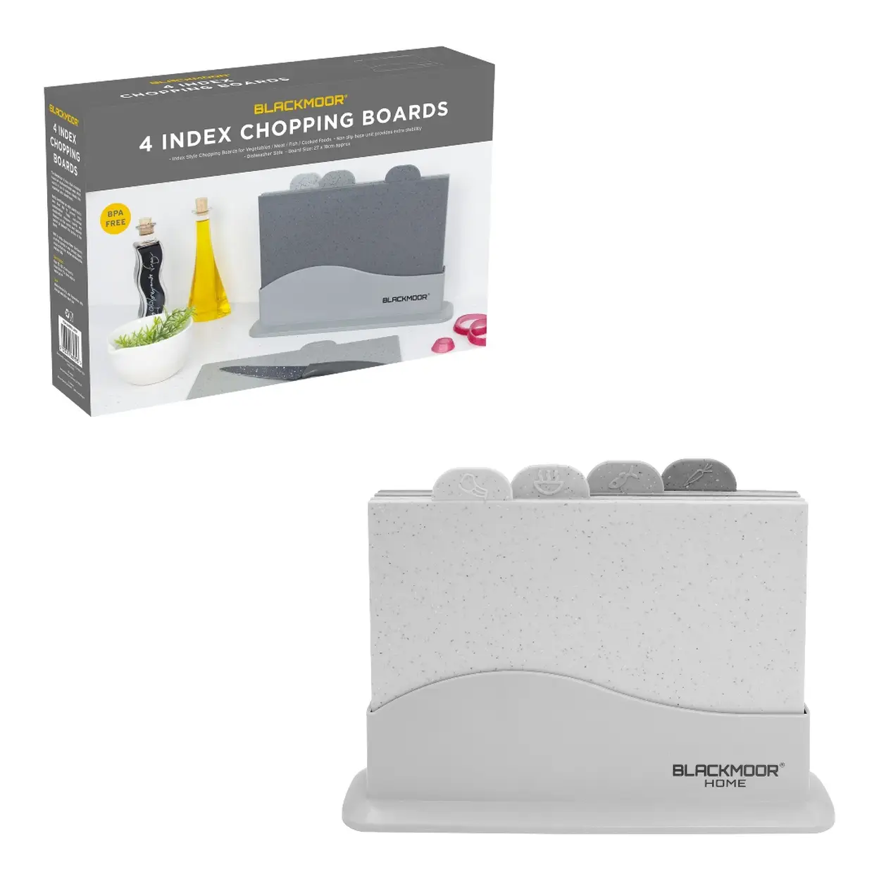 The Blackmoor Chopping Board Set provides an organised and practical solution for food preparation. Designed with durability and ease of cleaning in mind, these boards offer a safe surface for chopping, slicing, and dicing a variety of ingredients. Each board is colour-coded or sized to assist with food safety and prevent cross-contamination, making it suitable for meats, vegetables, fruits, and baked goods. The boards are lightweight, easy to handle, and designed to withstand daily kitchen use without warping or cracking. Their non-slip surfaces and sturdy construction ensure stability during chopping, reducing the risk of accidents. Ideal for everyday cooking, meal prep, and hosting, this set offers both convenience and efficiency in the kitchen while providing a clean, organised workspace.