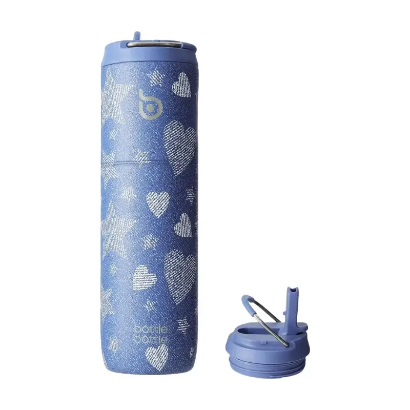 Bottle Bottle Stainless Steel Water Bottle 700ml with Straw and Lid Sports Insulated Metal Water Bottles with Handle (Denim Beats)