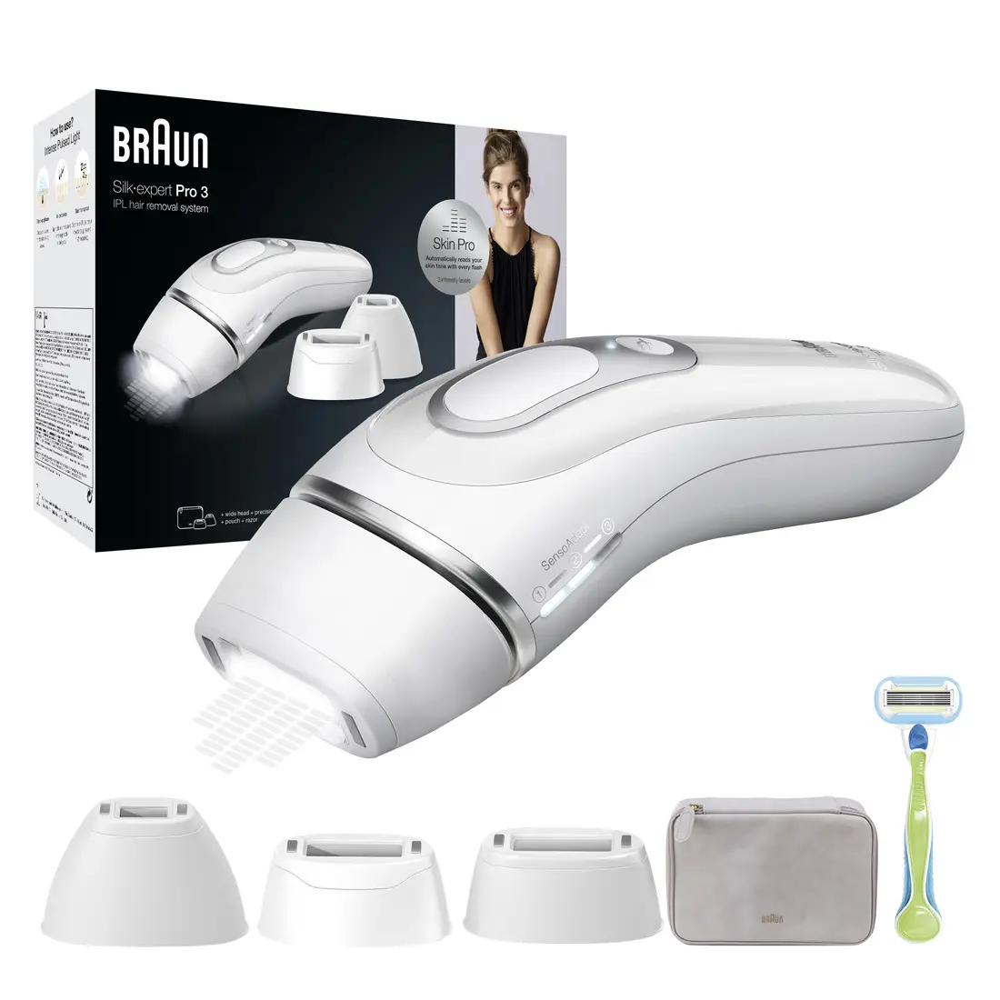 BRAUN Silk·expert Pro 3 PL3233 Women’s IPL, At Home Hair Removal Device with Pouch and 3 attachments, White/Silver,Top Gift Picks