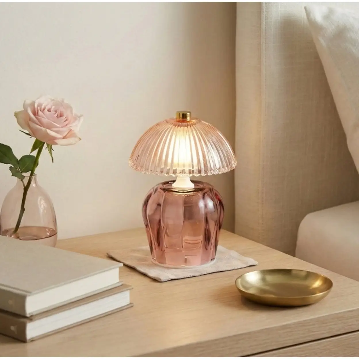 Candlelight Table Lamp Vintage Ridged Glass Shade LED Pink H:14.6cm
