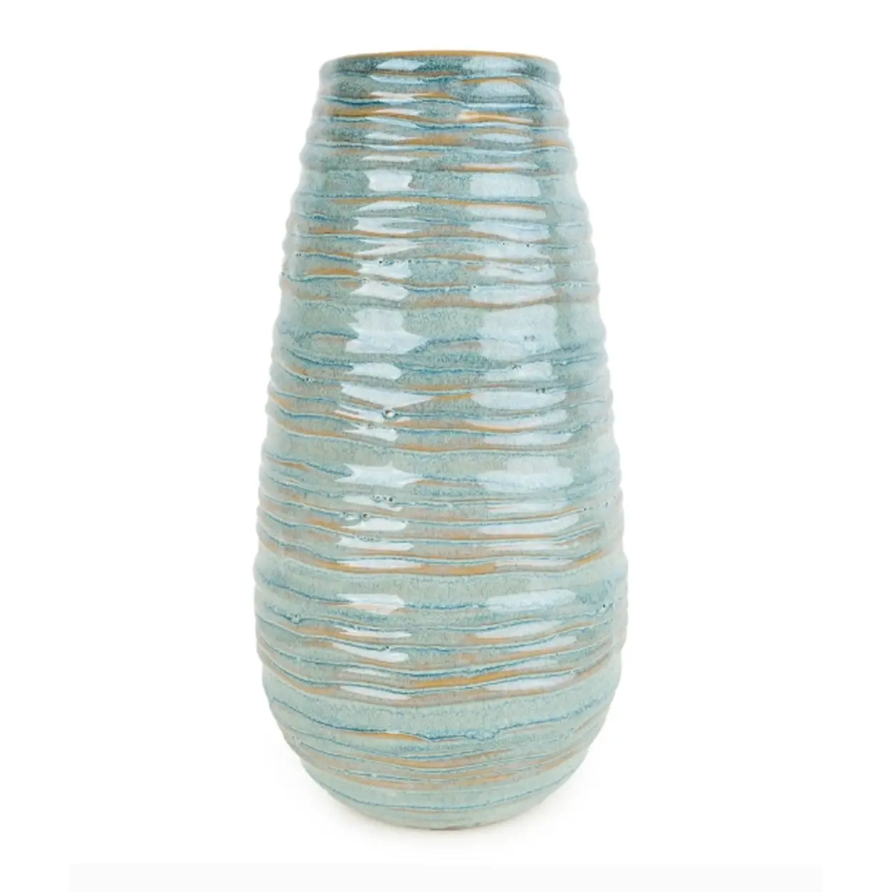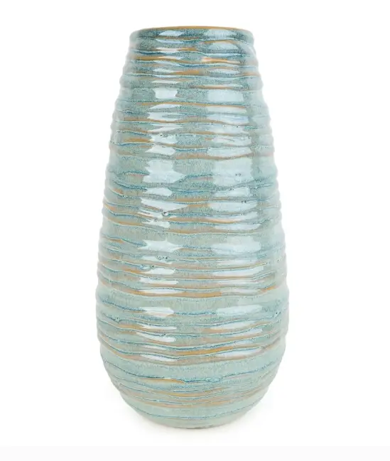 Candlelight Vase Ridged Glazed Blue H:20.5cm