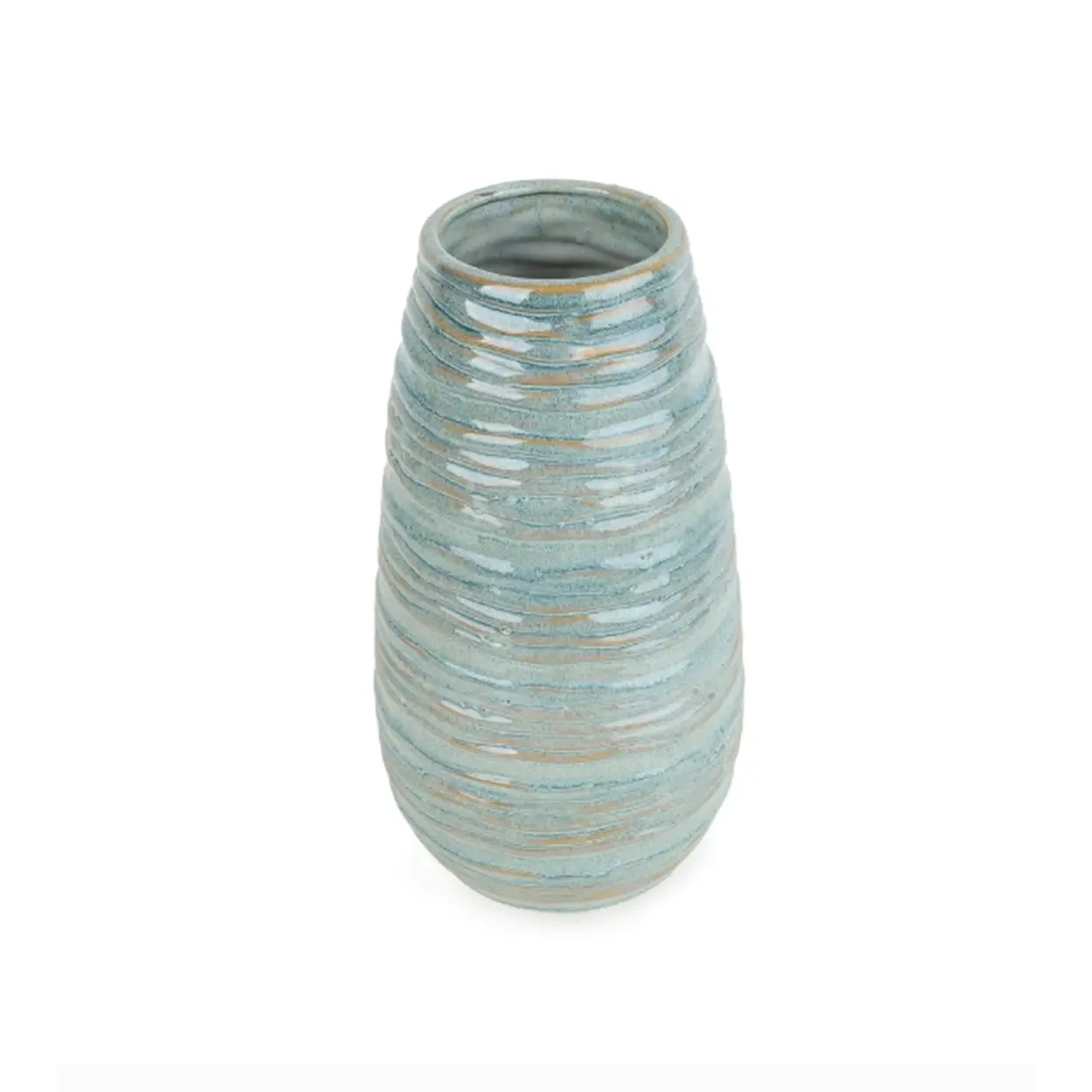 Candlelight Vase Ridged Glazed Blue H:28cm