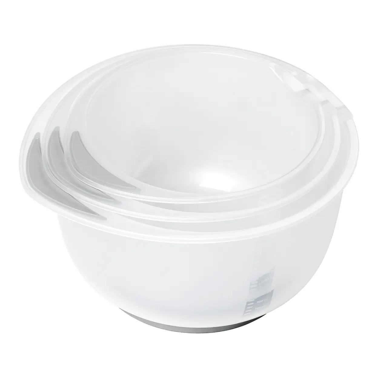 The thoughtful design extends beyond just the sizes. The nesting capability is a key feature, turning three separate bowls into a compact, space-efficient stack that tucks neatly into a corner of a cupboard. The non-slip base adds a layer of functionality, providing a secure grip on smooth surfaces during active use.
