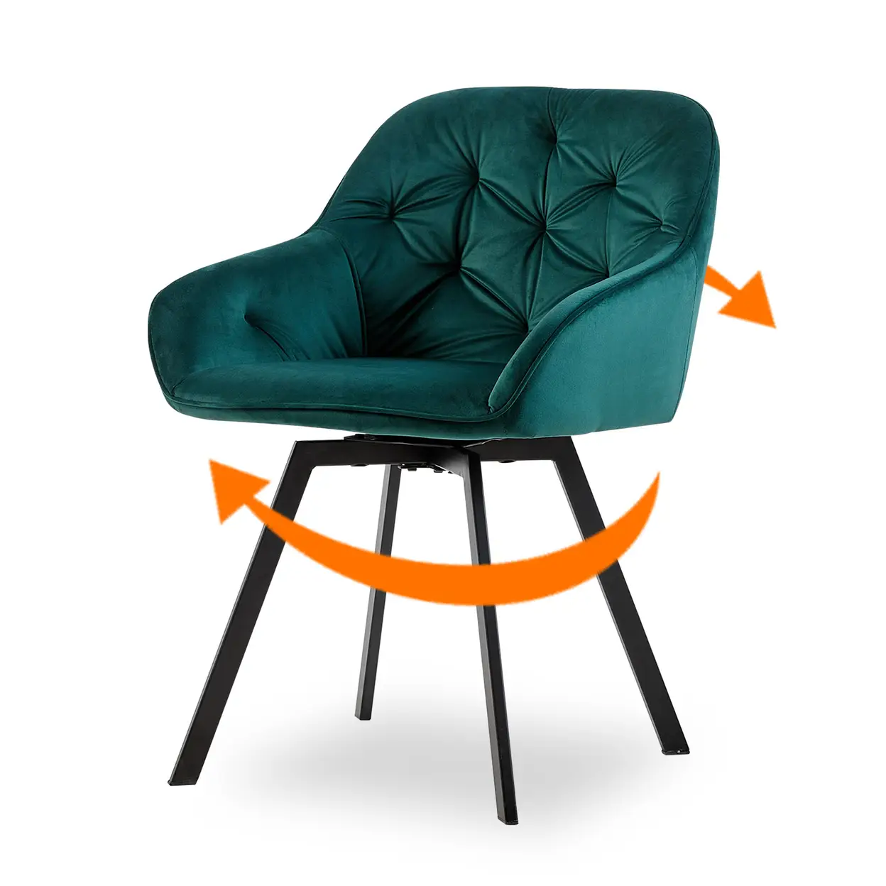 CLIPOP 360° Swivel Dining Chair Velvet Upholstered Desk Chairs without Wheels Ergonomic Office Chair with Arms and Metal Legs for Home Study 0197-s deep green 54.5*46*80 cm