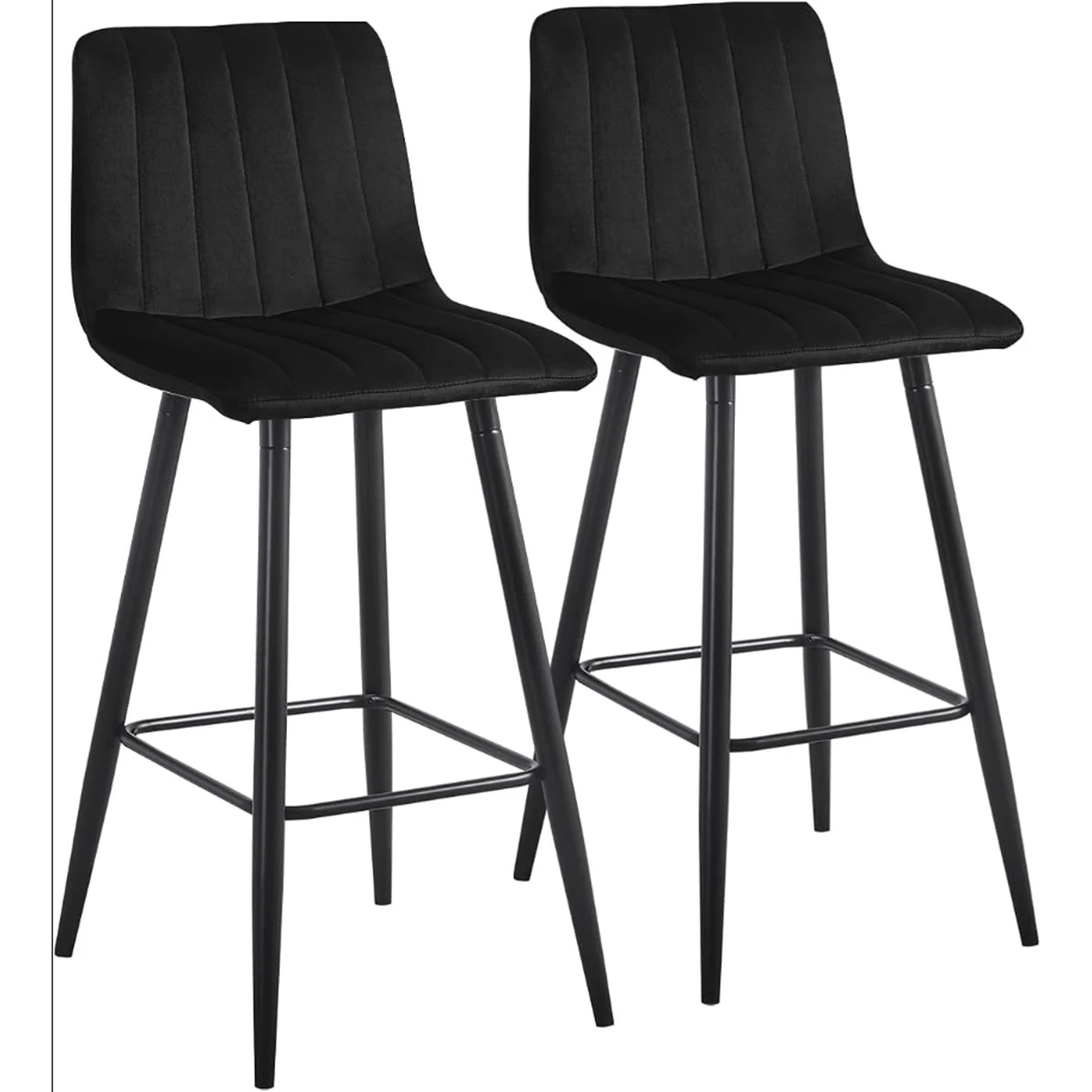 CLIPOP Velvet Bar Stools with Backrests Set of 2,  Matte Black Metal Legs, 2 PCS Kitchen Counter Bar Stools (65 cm Seat Height) 051 Black image 0