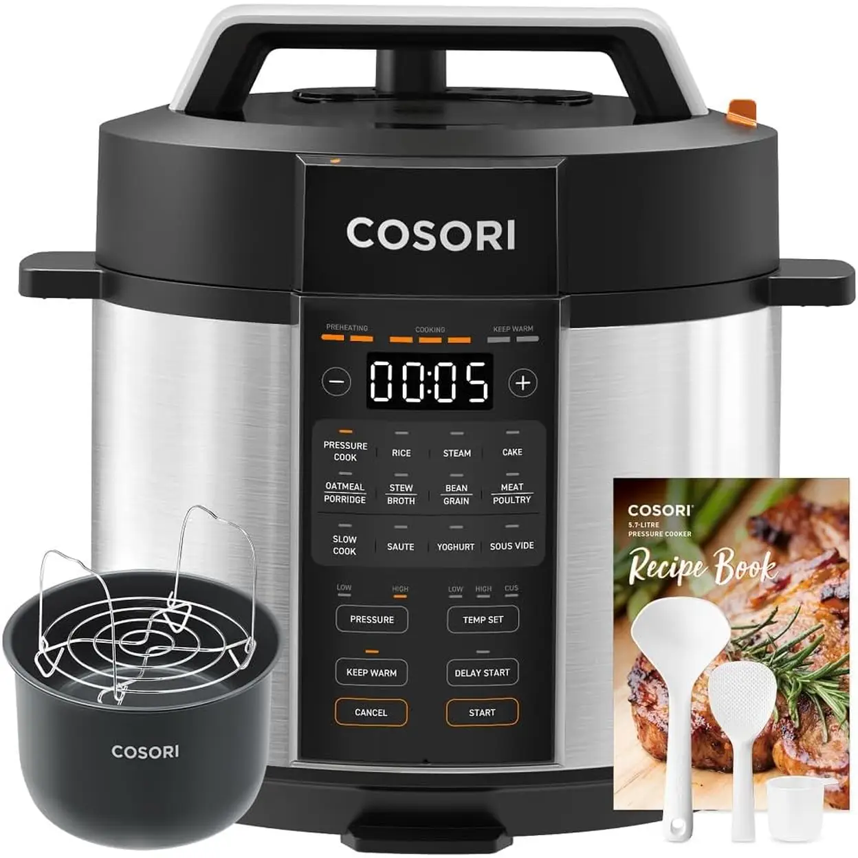 Cosori Electric Pressure Multi-Cooker - 5.7L, 9-in-1, Steamer, Rice & Slow Cooker, Sauté Pan, Yoghurt & Cake Maker, Sous vide, Stock Pot, Food Warmer, Ceramic Non-Stick Coating with Recipe Book