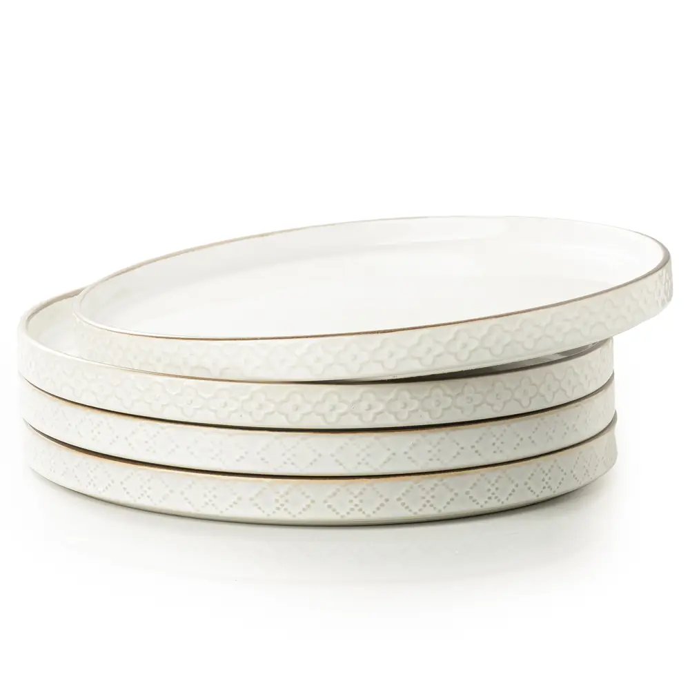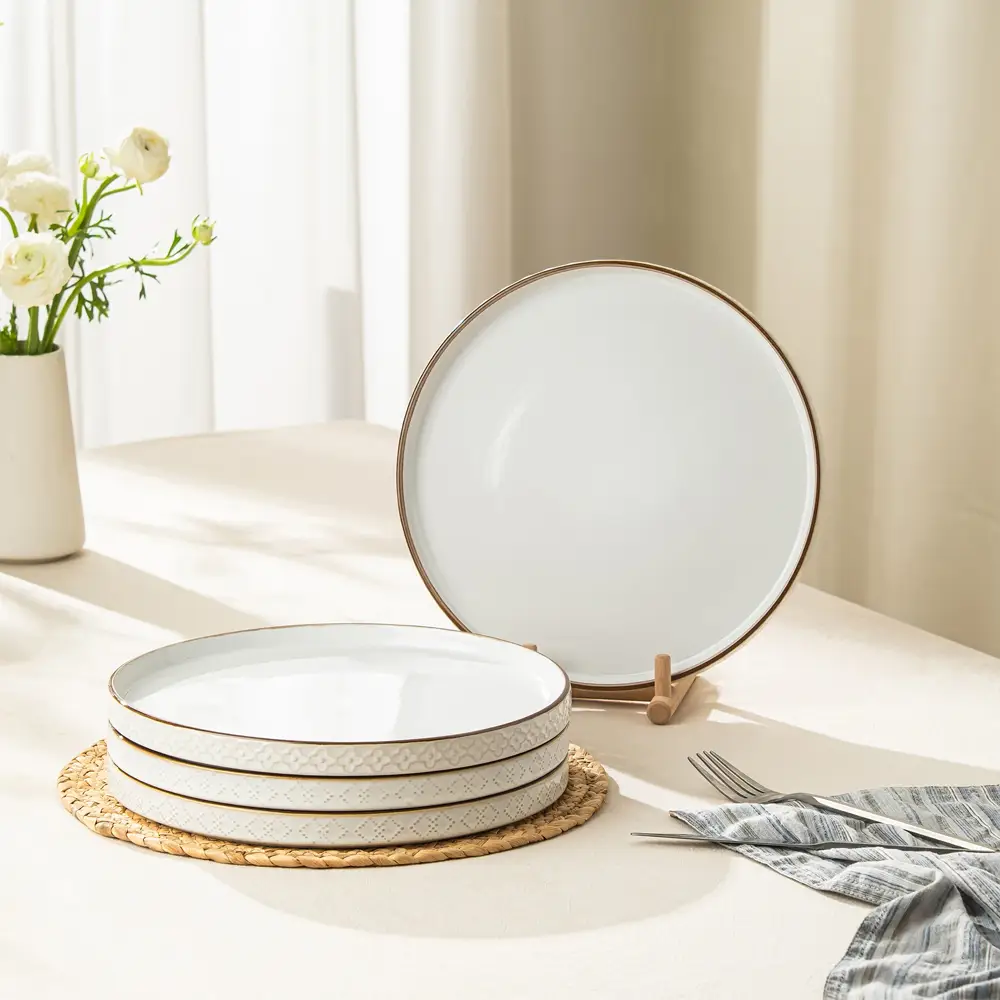 These plates are crafted from durable ceramic with a non-toxic, food-safe glossy glaze, featuring embossed patterns integrated into the ceramic body to ensure the decorative elements do not wear off.