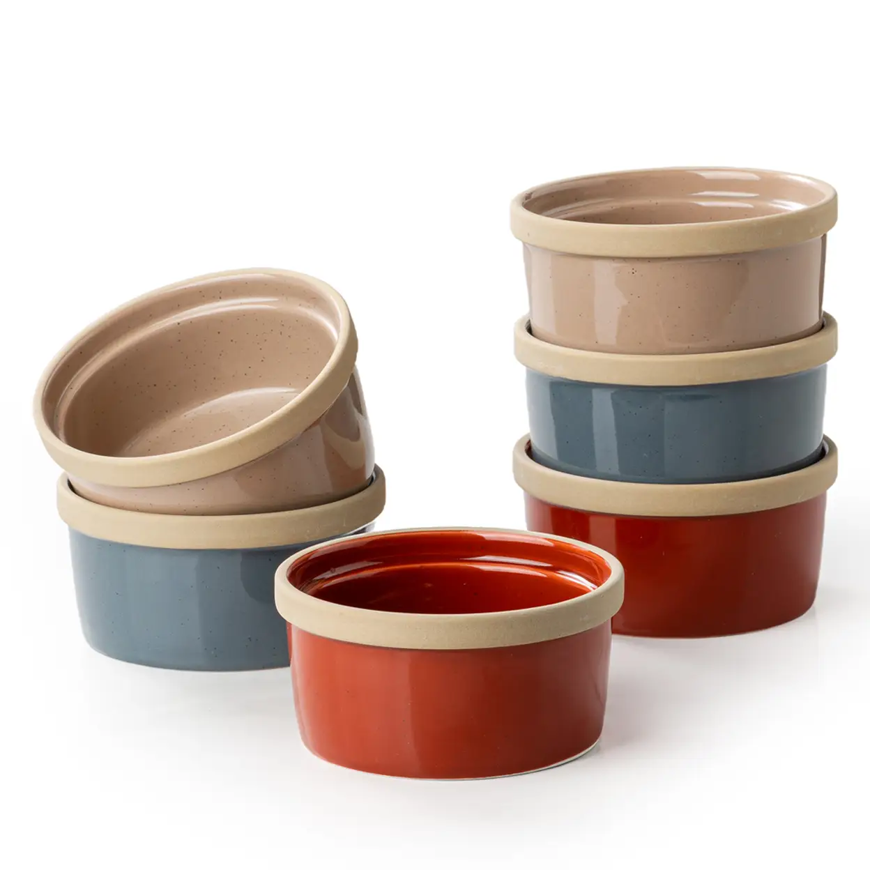 DAFUCERAMIC Ramekins 8 Oz Oven Safe, Ceramic Creme Brulee Souffle Dishes, Pudding Custard Cups Ramekin For Baking, Small Dipping Sauce Bowls, Set of 6, Microwave and Dishwasher Safe (Artisan Colors)