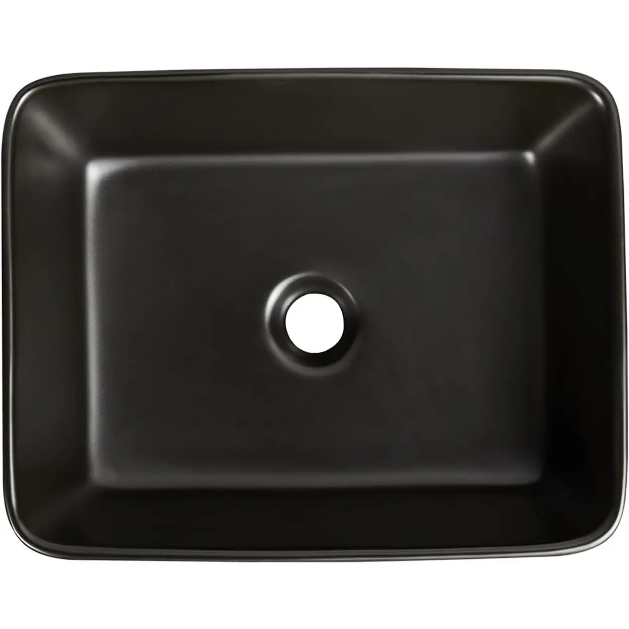 This rectangular vessel sink is crafted from high-quality ceramic using an integral molding process, creating a seamless and watertight construction that ensures a long service life. The material exhibits high resistance to scratches, stains, and fading over time. The matte black finish maintains its luxurious appearance through a durable glazing process that withstands daily use while providing easy maintenance.