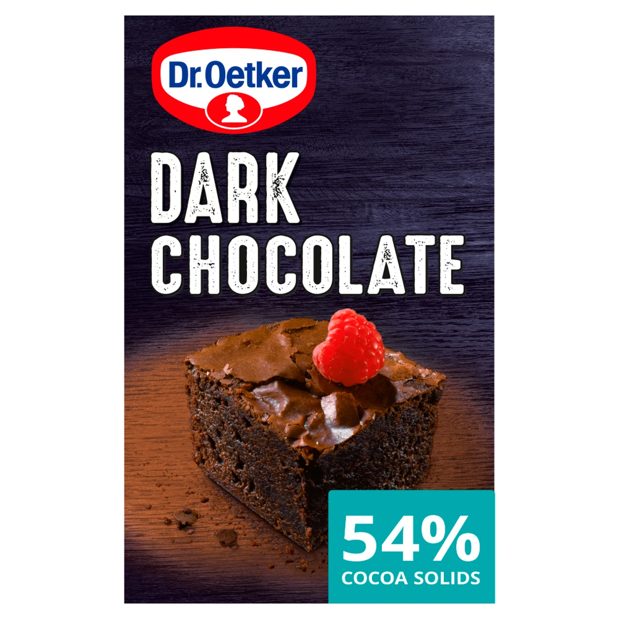 Dr. Oetker Dark Chocolate is made with 54% cocoa solids. Our signature blend of cocoa solids makes Dr. Oetker dark chocolate perfect for baking. Our dark cooking chocolate melts smoothly and has a rich and indulgent flavour. Unlike confectionery chocolate, our high-quality baking chocolate guarantees a reliable baking performance whilst maintaining flavour and can be used as an ingredient, a cake covering or a cake decoration. Suitable for those looking for vegan chocolate.