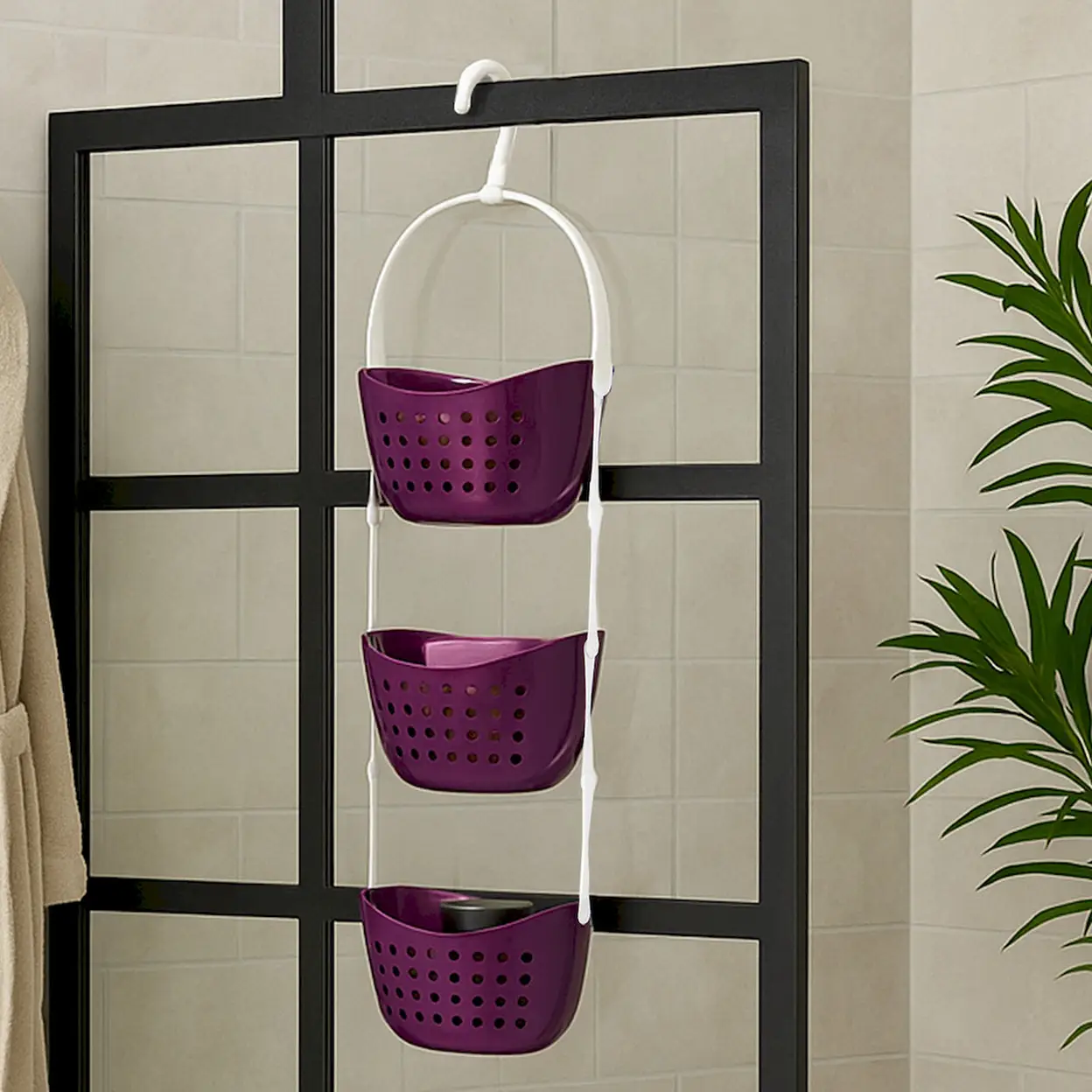 Crafted from high quality PP, this stylish purple shower caddy is designed to keep your bathroom organized and clutter-free. Featuring three spacious baskets, it offers ample storage for all your bathing essentials, ensuring everything you need is always within reach. The caddy hangs effortlessly from your shower, making it a convenient solution for keeping toiletries close to hand. Perfect for everyday use, this practical accessory adds a pop of colour and functionality to any bathroom.