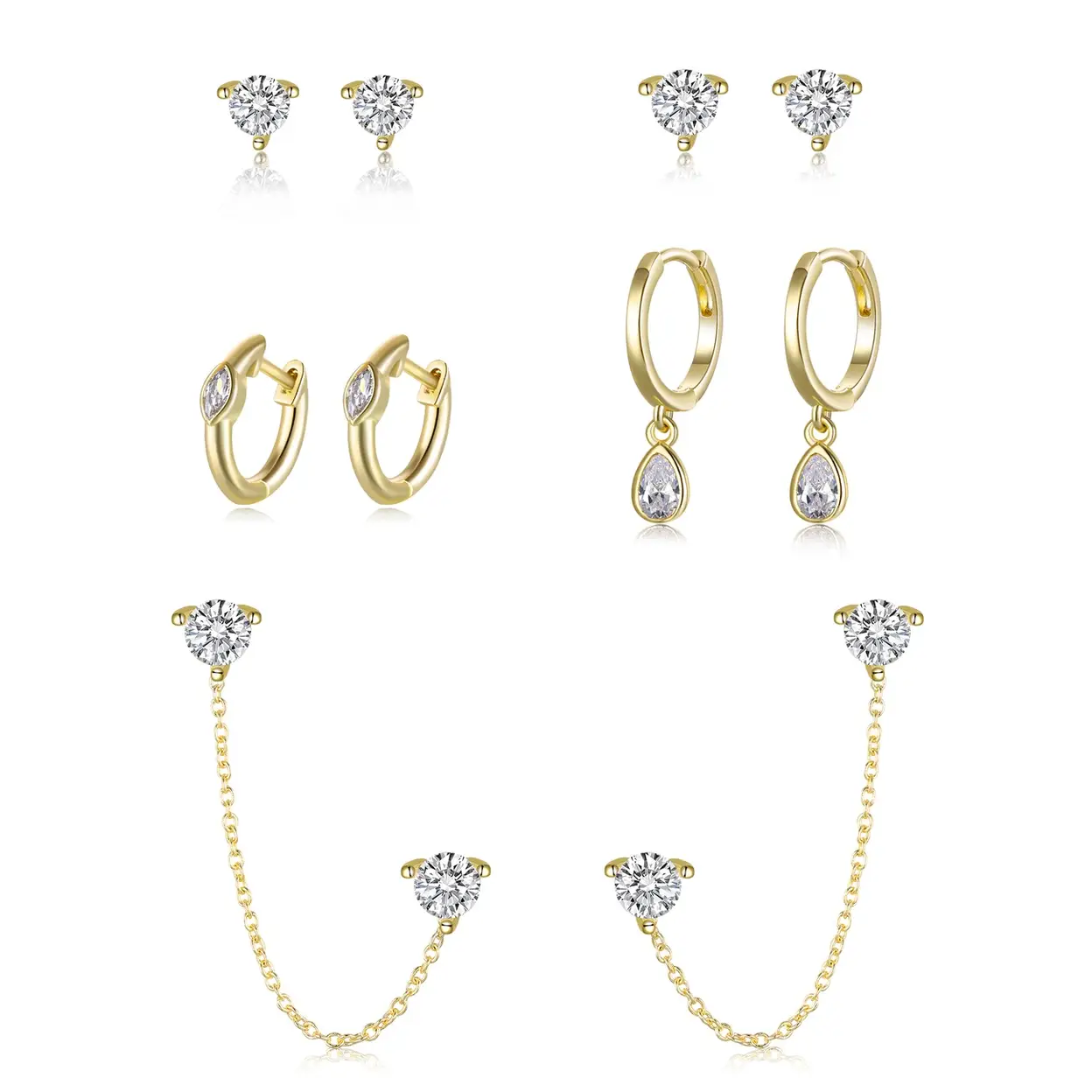 This versatile earring set includes 2 stud earrings, 2 hoop earrings, and 1 pair of chain earrings—all in a simple, stylish design. You can wear them individually or mix and match to create layered, fashionable looks. Perfect for the office, casual outings, weddings, or parties, this set offers endless styling possibilities.