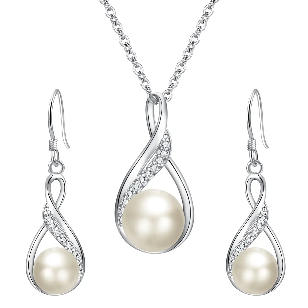 Ever Faith Cubic Zirconia and Freshwater Cultured Pearl Infinity Pendant Necklace and Earrings Set