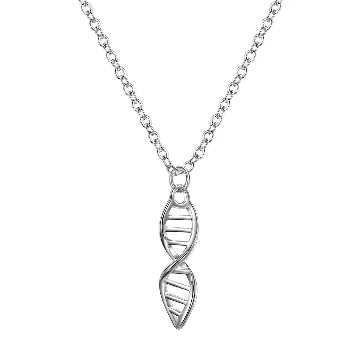 Design This silver plated DNA necklace is inspired by the double helix structure—symbolizing love, family bonds, and deep connection. Its elegant form captures the idea that love lives in every cell, making it a truly meaningful accessory.