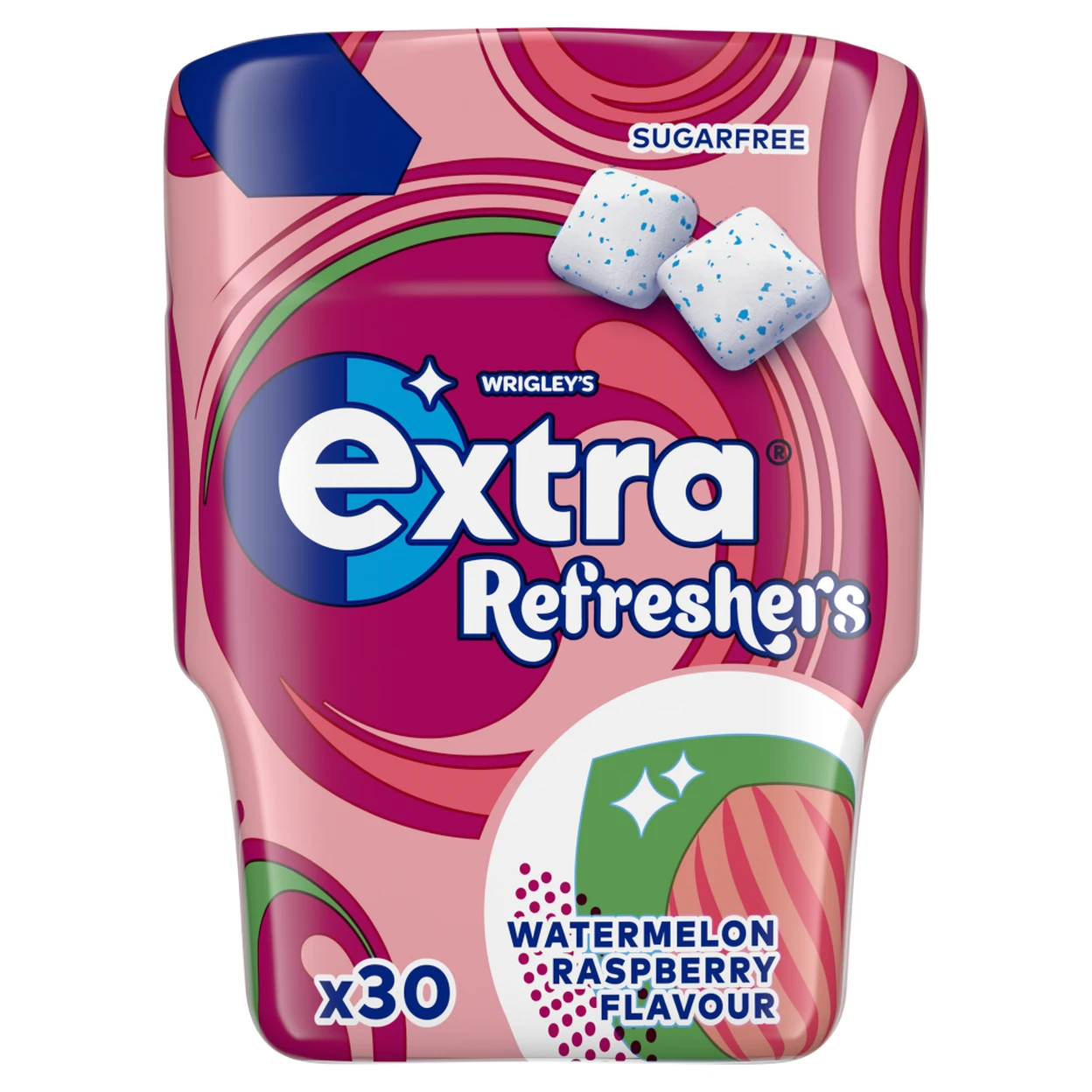 Sugar free chewing gum with a refreshing blend of watermelon and raspberry flavours