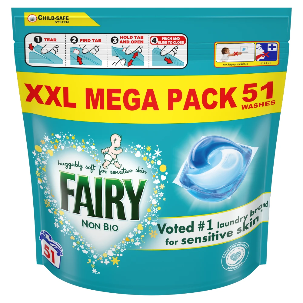Fairy PODS, Washing Liquid Laundry Detergent Capsules, Non Bio, Sensitive Skin, 51 Washes