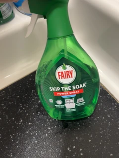 Skip the soak and make dishwashing faster and easier with Fairy Skip the Soak Power Spray. Specially formulated to tackle tough grease with no water required, this powerful spray delivers the cleaning performance of an overnight soak in just minutes. Ideal for pre-treating dishes before handwashing or dishwasher use, Fairy Power Spray works effectively on greasy pots, pans, and plates.