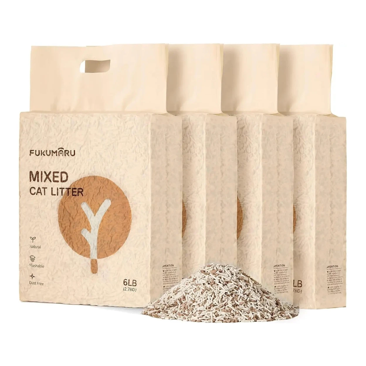 fukumaru Tofu Cat Litter, Strong Clumping Cat Litter, Dust Free Unscented Flushable Tofu Litter, Natural, Lightweight and Low Tracking Kitty Litter Pellets Mixed (Applewood) 2.7kg*4 bags