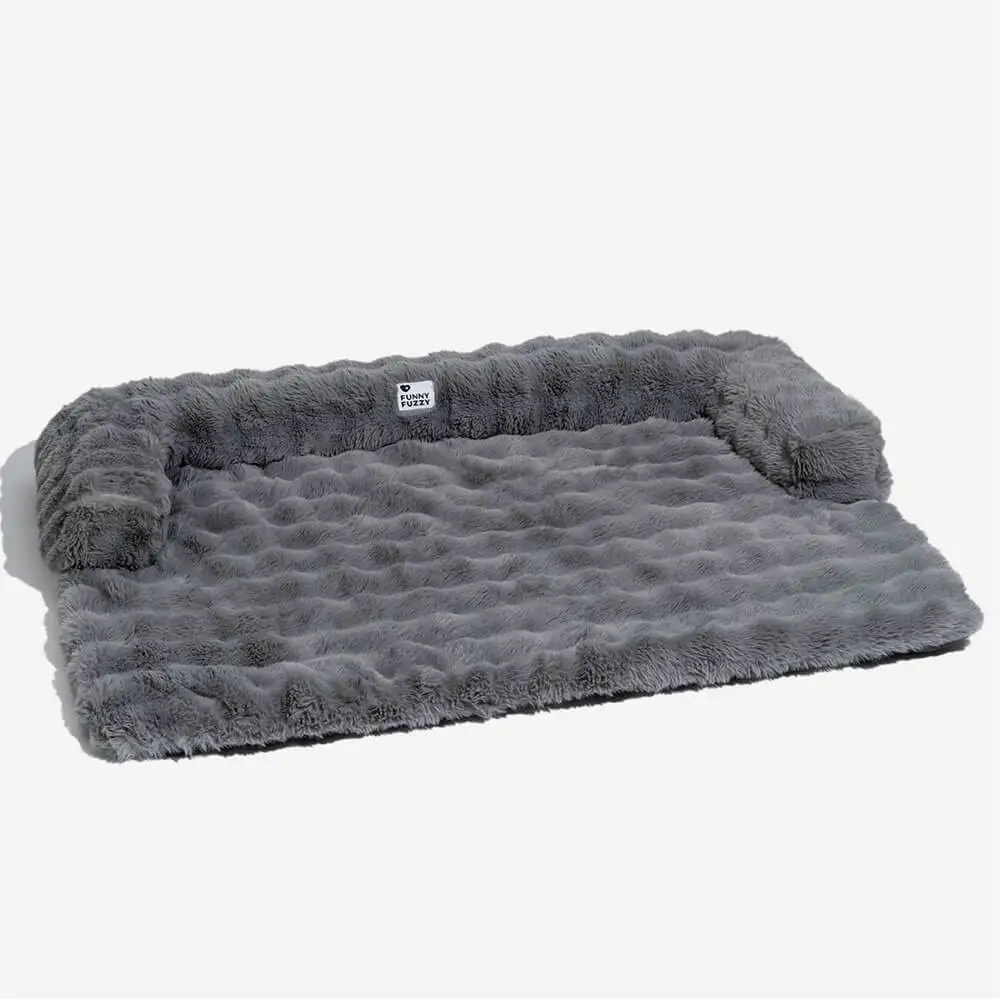 Fluffy Plush Calming Dog Cat Pet Bed Sofa Protective Pet Mat Size M Gray