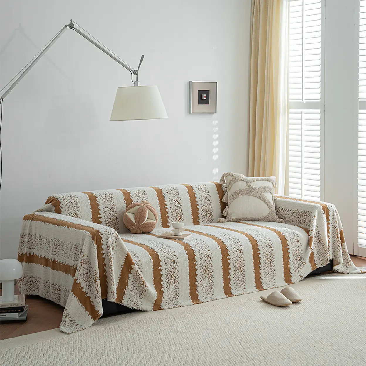 Furry Fluffy Elastic Sofa Slipcover & Pillowcase, Warm Vertical Stripe Sofa Slipcover for Furniture Protect, High Elasticity Machine Washable Couch Covers-orange,70*70inch