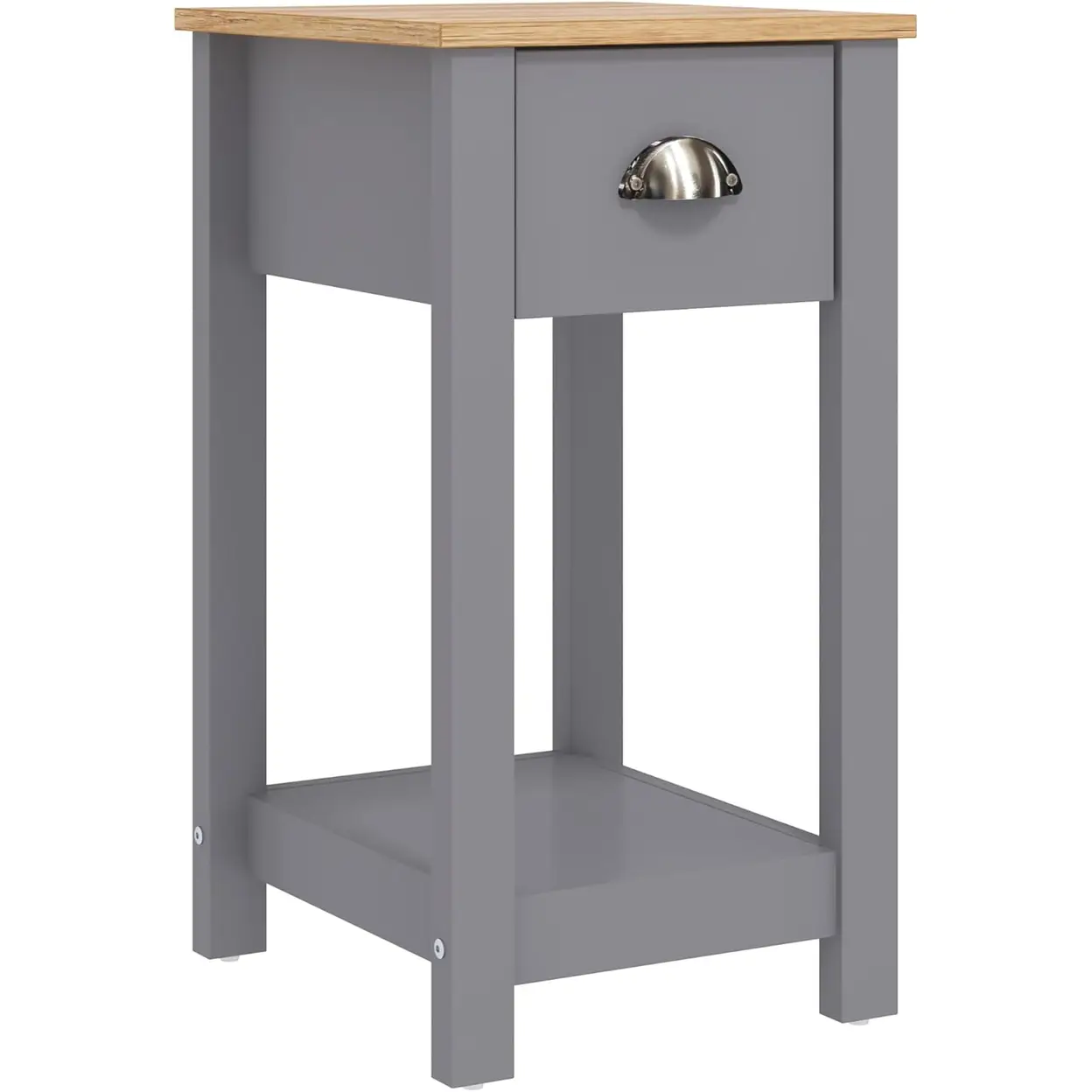 Galano Lilly Bedside Table - Slim Side Table with Storage, Organizer and Cabinet for Bedroom, Hallway or Entryway – Cool Grey/Beaufort Oak