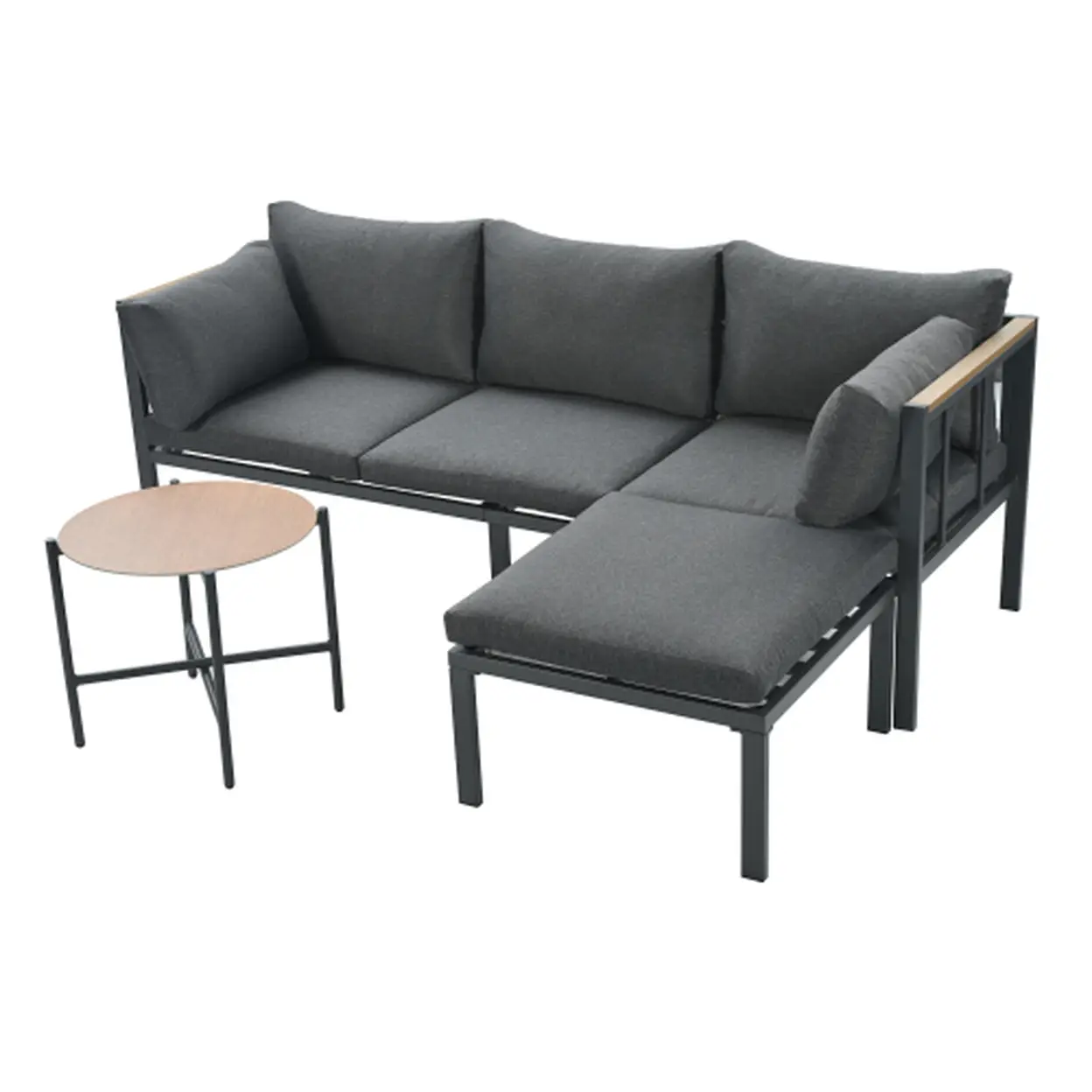 Garden furniture set, corner set, sofa + coffee table + footstool, galvanized steel tube, glass table top, suitable for gardens, swimming pools and other outdoor areas, grey
