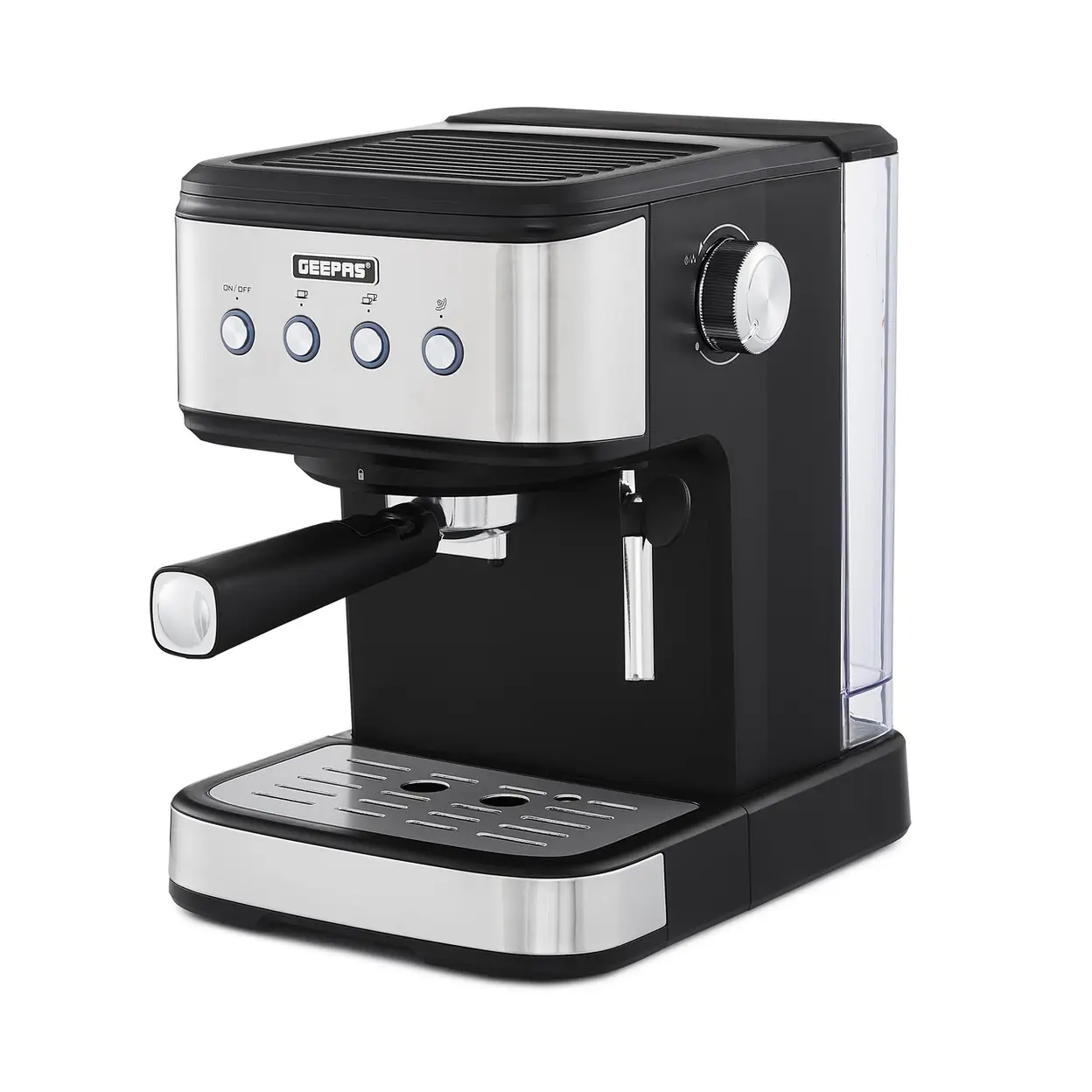 Geepas Barista Espresso Coffee Machine, 20 Bar, Milk Frother Steam Wand, Black & Silver - GCM41521UK