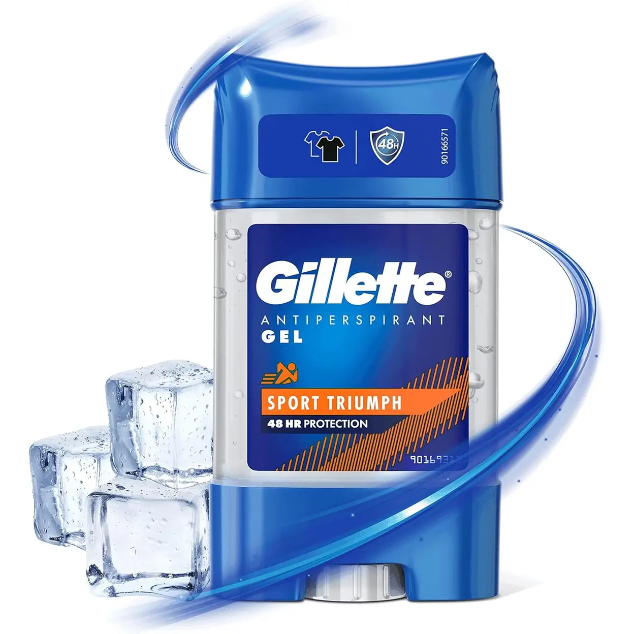 This product, the Gillette Clear Gel Sport Triumph Antiperspirant Deodorant in a 70ml bottle, is used to provide men with powerful, long-lasting sweat and odour protection for up to 48 hours, keeping you feeling fresh and confident throughout even the most demanding days. Formulated with a precision-engineered gel formula, this antiperspirant goes on clear and stays clear, delivering invisible protection against sweat and odour without leaving unsightly white marks on your clothing or skin. The triple protection formula combines active odour blockers that eliminate odour at the source, a transparent dry shield that reduces underarm wetness, and all-day dry technology that keeps you feeling fresh from morning until night. Ideal for active individuals who refuse to let sweat hold them back, this gel antiperspirant offers high-performance protection that you can rely on, whether you‘re at the office, at the gym or on the go.