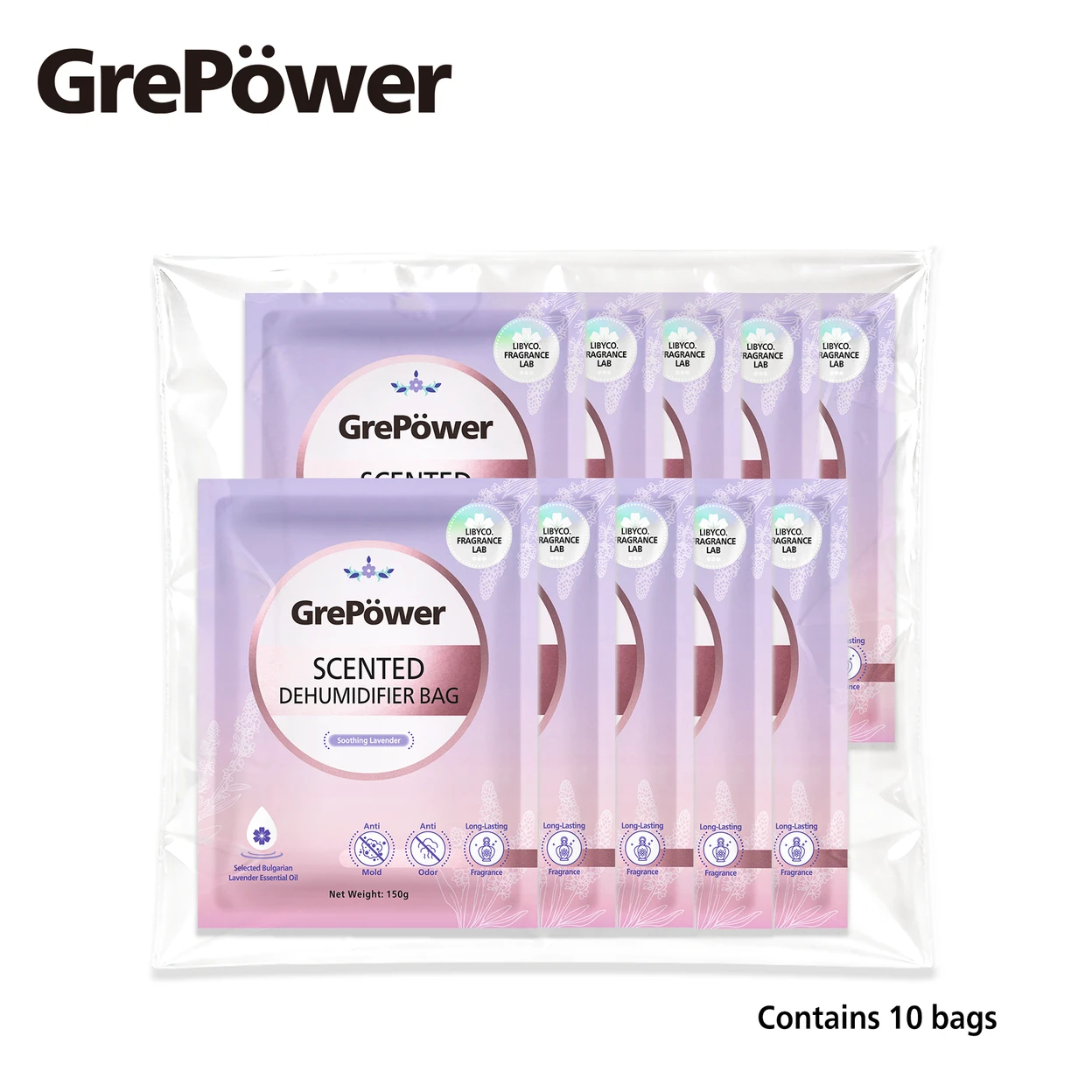 Grepower Hanging Dehumidifier Bags with Lavender Scent, 10-Pack, Effective Against Moisture and Mold, for Wardrobe/Home/Kitchen/Garage/Bedroom/Motorhome/Office/Basement
