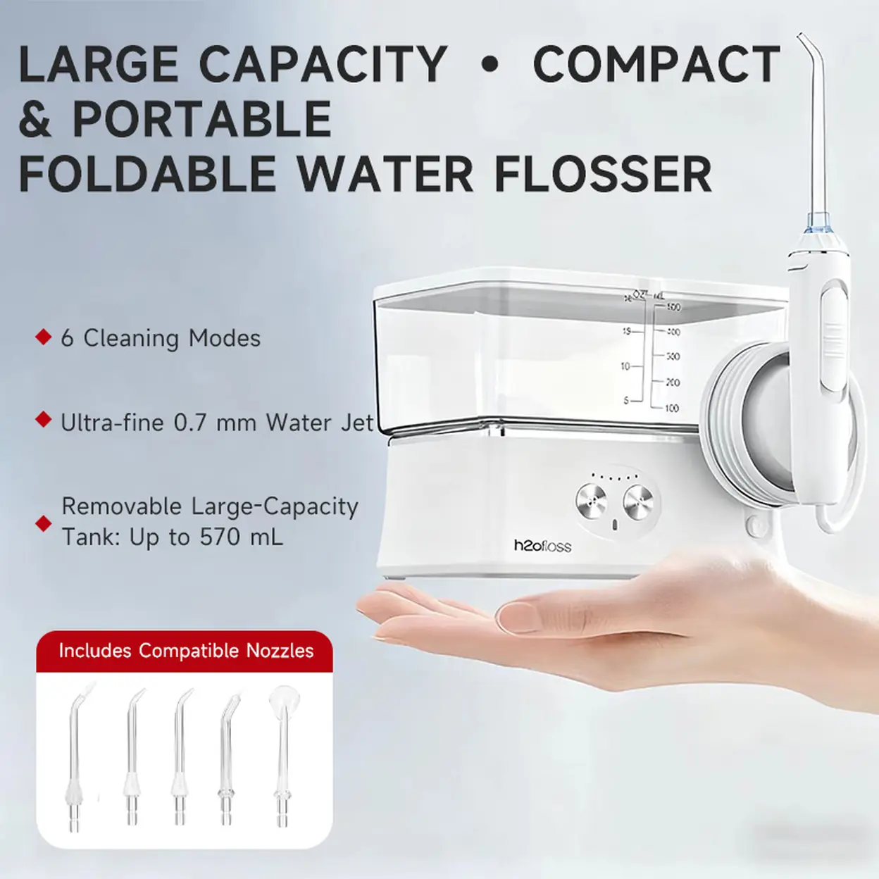 H2ofloss Portable Water Flosser, 6 Modes, 5 Spray Heads, 2500mAH Battery, 570ml Water Tank, IPX7 Waterproof, White