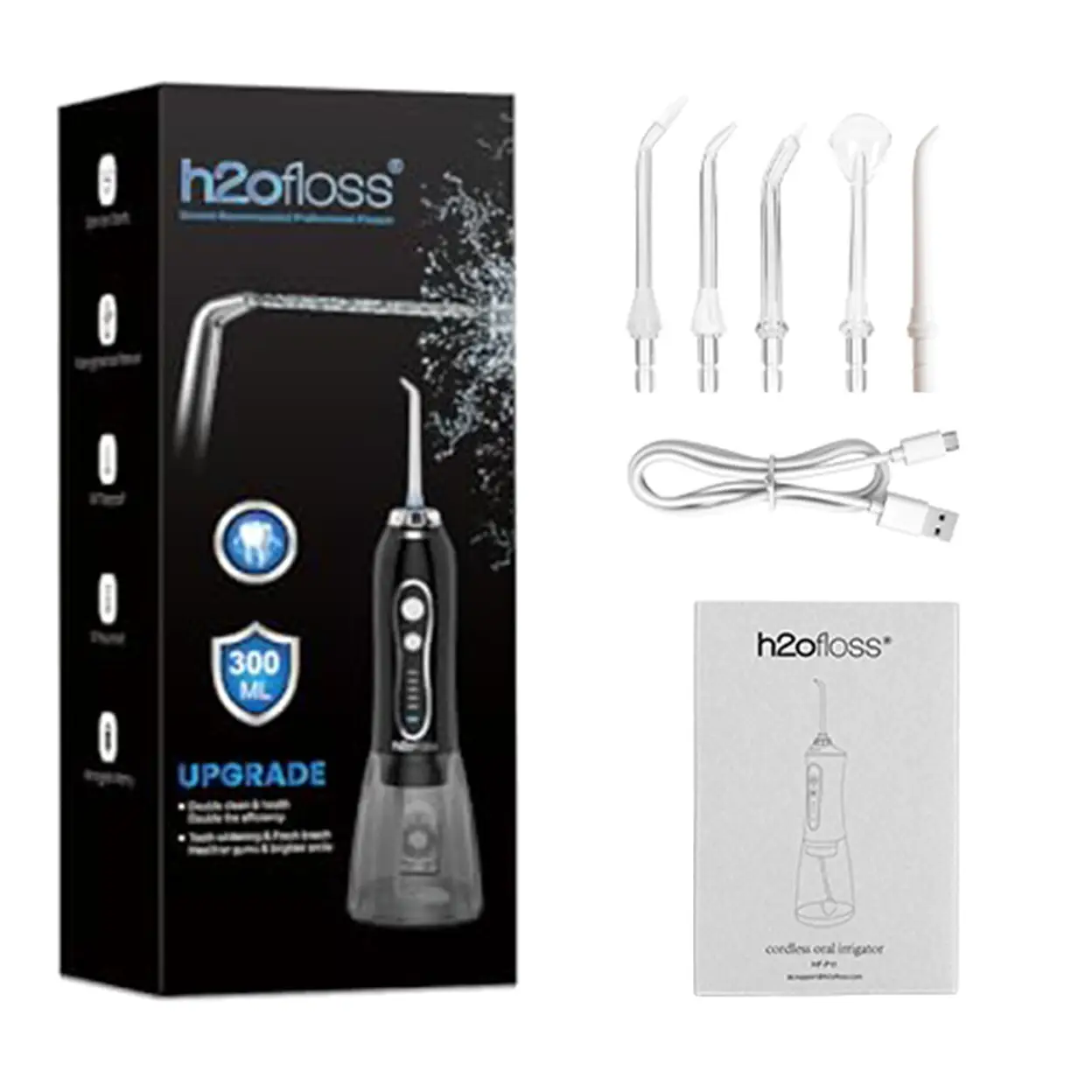 H2ofloss toothbrush, oral water jet, dental water jet, high-pressure cleaning, 300ml large water tank, 5 modes, 2500MAh, IPX7 waterproof