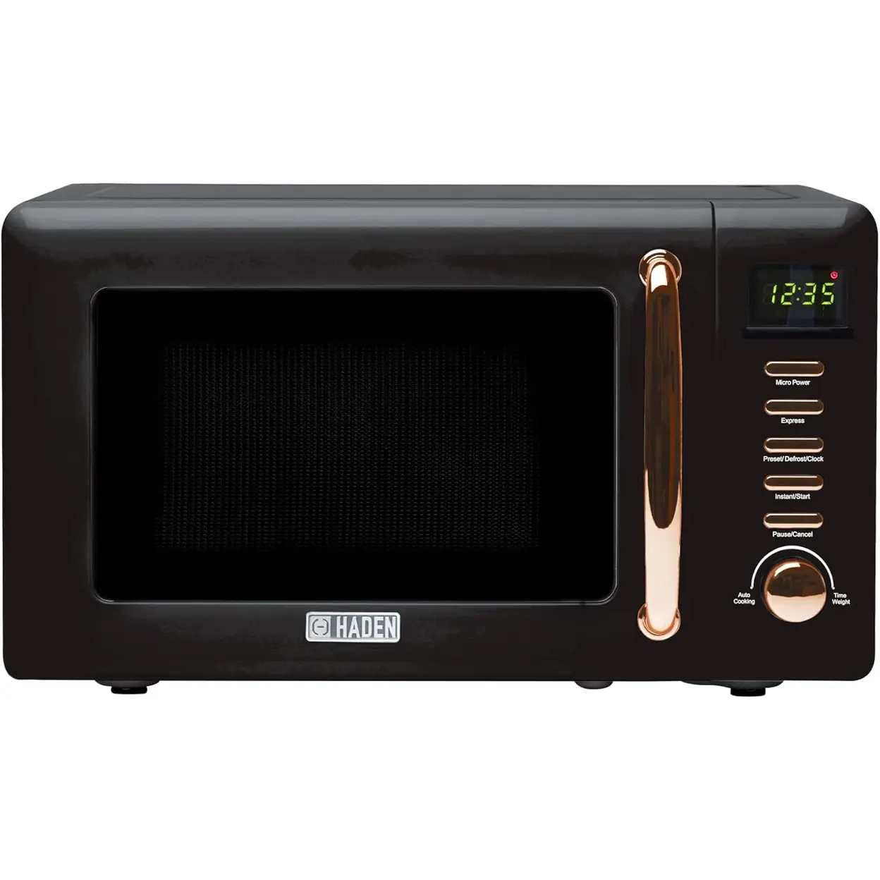 Haden Salcombe Solo Microwave Oven - 20L, 800W, Black & Copper, 5 Power Levels, Convenient Digital Timer, Versatile with Defrost, Reheat & Cooking Functions